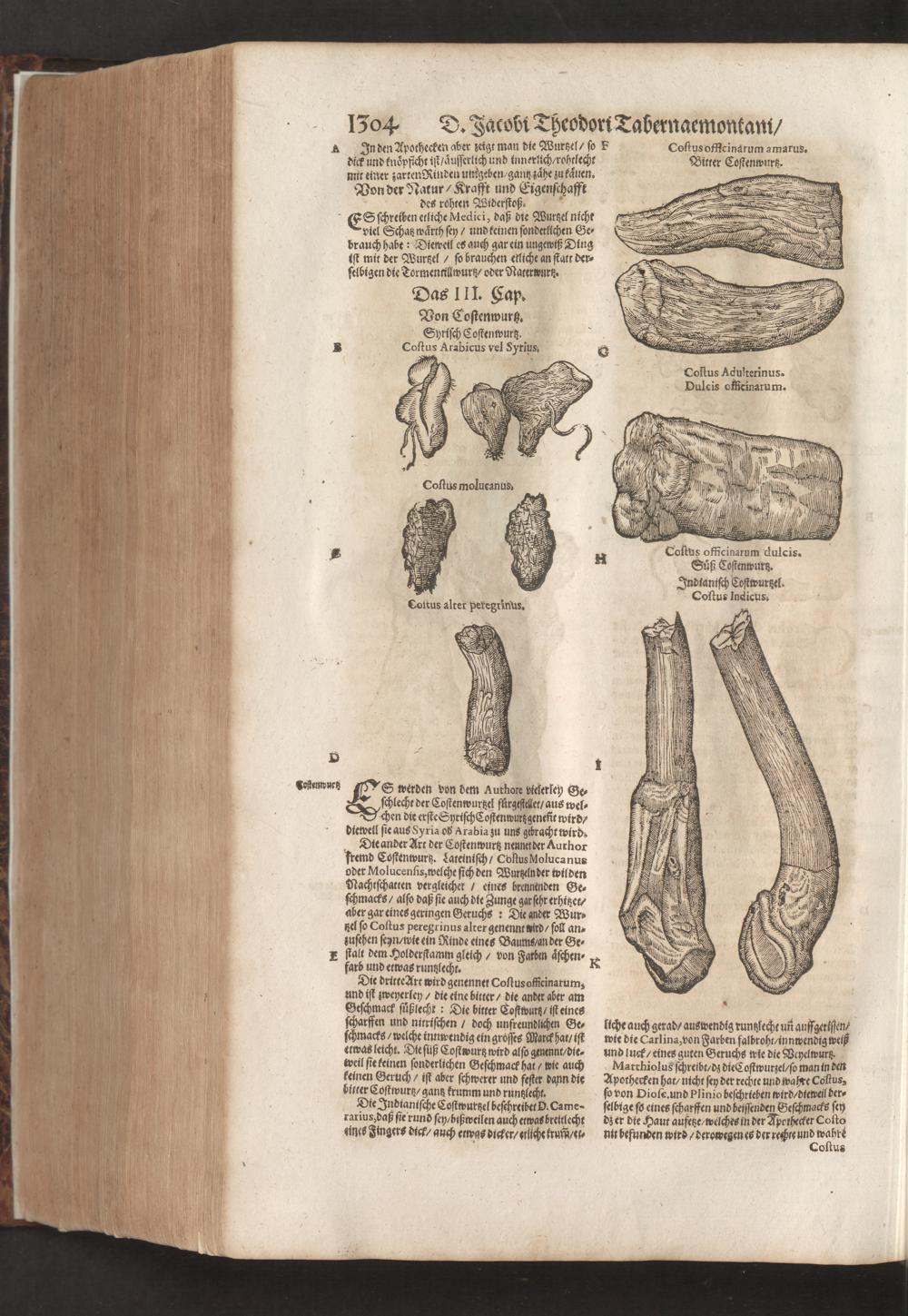 D. Jacobi Theodori Tabernaemontani, Neu vollkommen Kräuter-Buch : Darinnen Uber 3000. Kräuter/ mit schönen und kunstlichen Figuren/ auch deren Underscheid und Würckung/ samt ihren Namen in mancherley Sprachen/ beschrieben: Desgleichen auch/ wie dieselbige in allerhand Kranckheiten/ beyde der Menschen und des Viehs/ sollen angewendet und gebraucht werden/ angezeigt wird. Erstlichen durch Casparum Bauhinum D. und Profess. Basil. mit vielen neuen Figuren/ nutzlichen Artzneyen/ und anderem/ mit sonderem Fleis gebesseret/ Zum Andern Durch Hieronymum Bauhinum D. und Profess. Basil. mit sehr nutzlichen Marginalien, Synonimis, neuen Registeren und anderem vermehrt