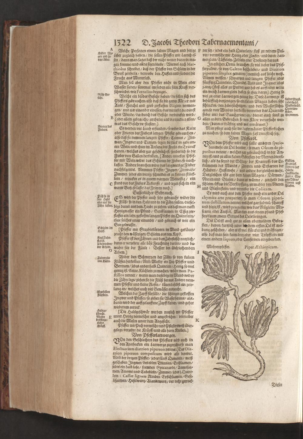 D. Jacobi Theodori Tabernaemontani, Neu vollkommen Kräuter-Buch : Darinnen Uber 3000. Kräuter/ mit schönen und kunstlichen Figuren/ auch deren Underscheid und Würckung/ samt ihren Namen in mancherley Sprachen/ beschrieben: Desgleichen auch/ wie dieselbige in allerhand Kranckheiten/ beyde der Menschen und des Viehs/ sollen angewendet und gebraucht werden/ angezeigt wird. Erstlichen durch Casparum Bauhinum D. und Profess. Basil. mit vielen neuen Figuren/ nutzlichen Artzneyen/ und anderem/ mit sonderem Fleis gebesseret/ Zum Andern Durch Hieronymum Bauhinum D. und Profess. Basil. mit sehr nutzlichen Marginalien, Synonimis, neuen Registeren und anderem vermehrt