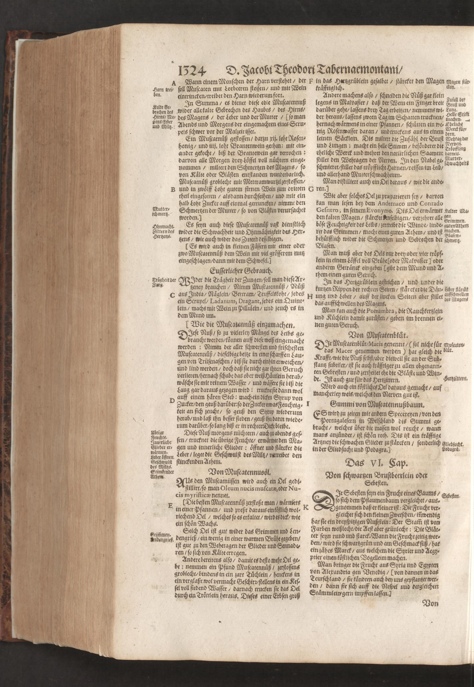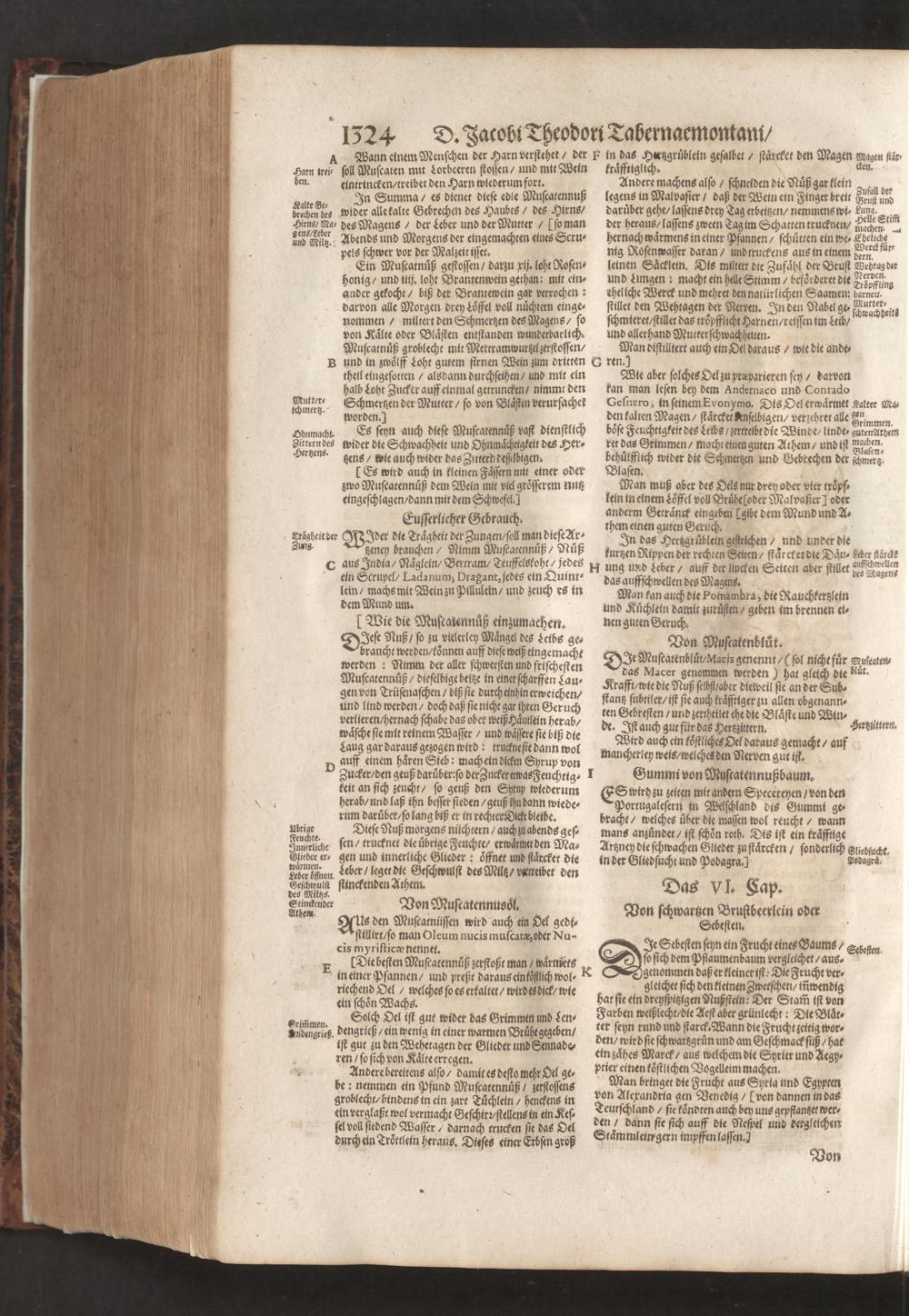 D. Jacobi Theodori Tabernaemontani, Neu vollkommen Kräuter-Buch : Darinnen Uber 3000. Kräuter/ mit schönen und kunstlichen Figuren/ auch deren Underscheid und Würckung/ samt ihren Namen in mancherley Sprachen/ beschrieben: Desgleichen auch/ wie dieselbige in allerhand Kranckheiten/ beyde der Menschen und des Viehs/ sollen angewendet und gebraucht werden/ angezeigt wird. Erstlichen durch Casparum Bauhinum D. und Profess. Basil. mit vielen neuen Figuren/ nutzlichen Artzneyen/ und anderem/ mit sonderem Fleis gebesseret/ Zum Andern Durch Hieronymum Bauhinum D. und Profess. Basil. mit sehr nutzlichen Marginalien, Synonimis, neuen Registeren und anderem vermehrt