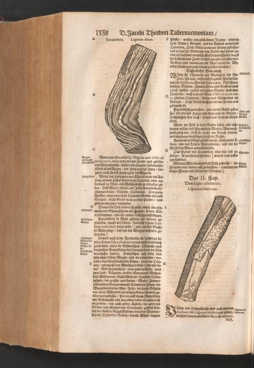 D. Jacobi Theodori Tabernaemontani, Neu vollkommen Kräuter-Buch : Darinnen Uber 3000. Kräuter/ mit schönen und kunstlichen Figuren/ auch deren Underscheid und Würckung/ samt ihren Namen in mancherley Sprachen/ beschrieben: Desgleichen auch/ wie dieselbige in allerhand Kranckheiten/ beyde der Menschen und des Viehs/ sollen angewendet und gebraucht werden/ angezeigt wird. Erstlichen durch Casparum Bauhinum D. und Profess. Basil. mit vielen neuen Figuren/ nutzlichen Artzneyen/ und anderem/ mit sonderem Fleis gebesseret/ Zum Andern Durch Hieronymum Bauhinum D. und Profess. Basil. mit sehr nutzlichen Marginalien, Synonimis, neuen Registeren und anderem vermehrt