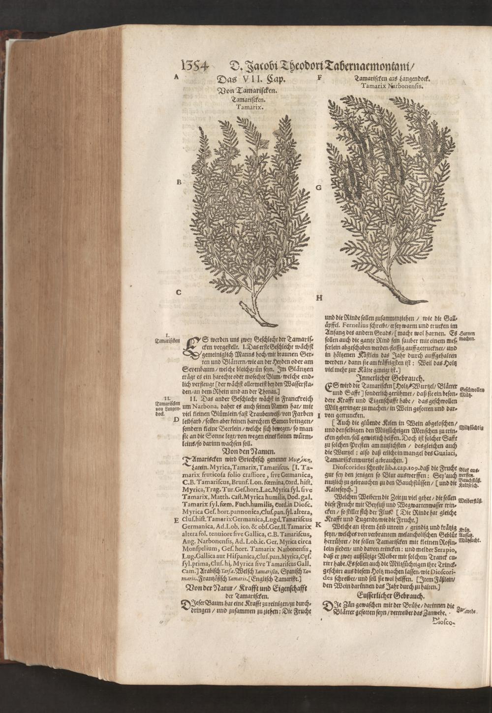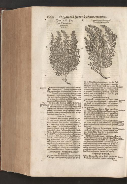 D. Jacobi Theodori Tabernaemontani, Neu vollkommen Kräuter-Buch : Darinnen Uber 3000. Kräuter/ mit schönen und kunstlichen Figuren/ auch deren Underscheid und Würckung/ samt ihren Namen in mancherley Sprachen/ beschrieben: Desgleichen auch/ wie dieselbige in allerhand Kranckheiten/ beyde der Menschen und des Viehs/ sollen angewendet und gebraucht werden/ angezeigt wird. Erstlichen durch Casparum Bauhinum D. und Profess. Basil. mit vielen neuen Figuren/ nutzlichen Artzneyen/ und anderem/ mit sonderem Fleis gebesseret/ Zum Andern Durch Hieronymum Bauhinum D. und Profess. Basil. mit sehr nutzlichen Marginalien, Synonimis, neuen Registeren und anderem vermehrt