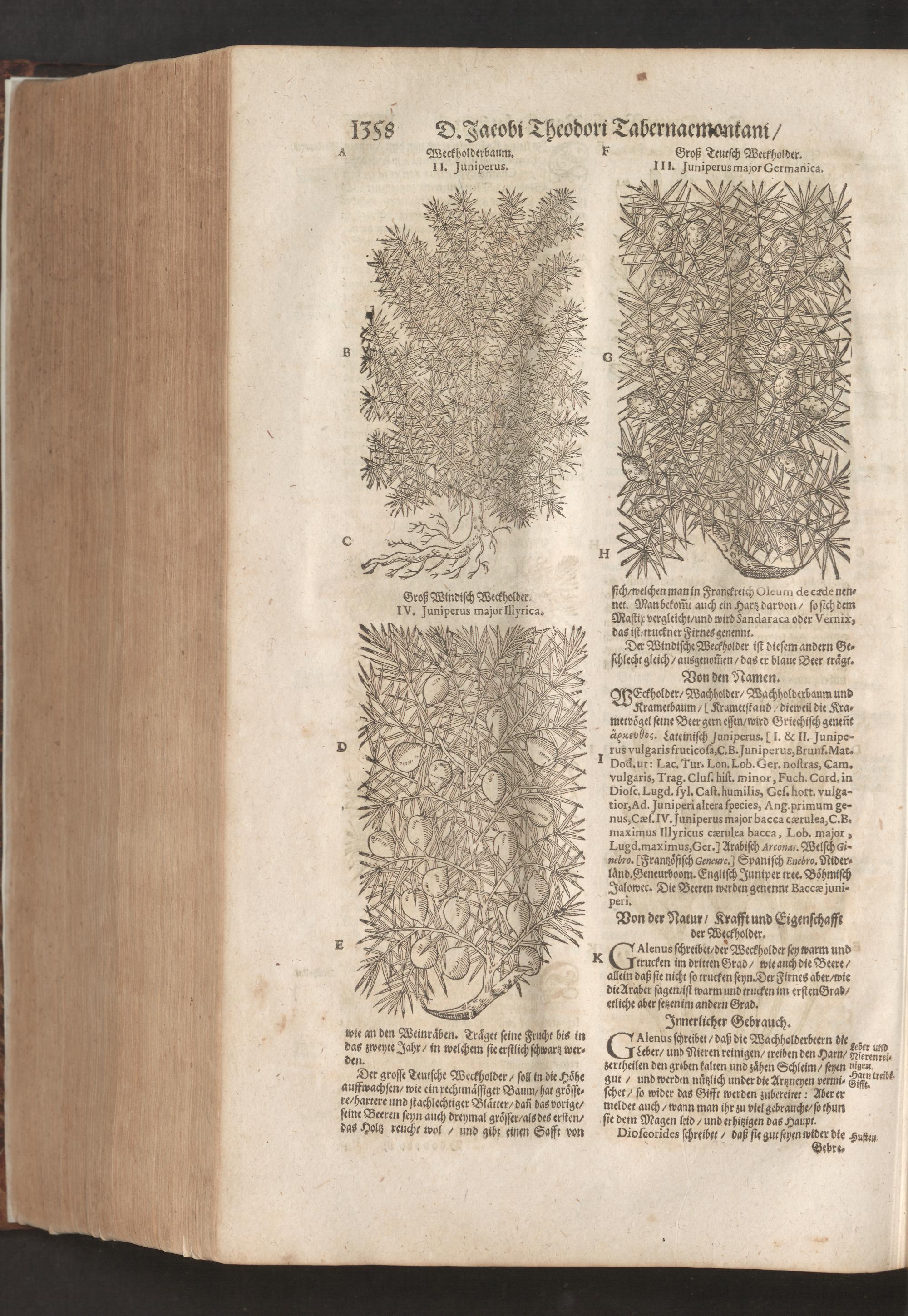 D. Jacobi Theodori Tabernaemontani, Neu vollkommen Kräuter-Buch : Darinnen Uber 3000. Kräuter/ mit schönen und kunstlichen Figuren/ auch deren Underscheid und Würckung/ samt ihren Namen in mancherley Sprachen/ beschrieben: Desgleichen auch/ wie dieselbige in allerhand Kranckheiten/ beyde der Menschen und des Viehs/ sollen angewendet und gebraucht werden/ angezeigt wird. Erstlichen durch Casparum Bauhinum D. und Profess. Basil. mit vielen neuen Figuren/ nutzlichen Artzneyen/ und anderem/ mit sonderem Fleis gebesseret/ Zum Andern Durch Hieronymum Bauhinum D. und Profess. Basil. mit sehr nutzlichen Marginalien, Synonimis, neuen Registeren und anderem vermehrt