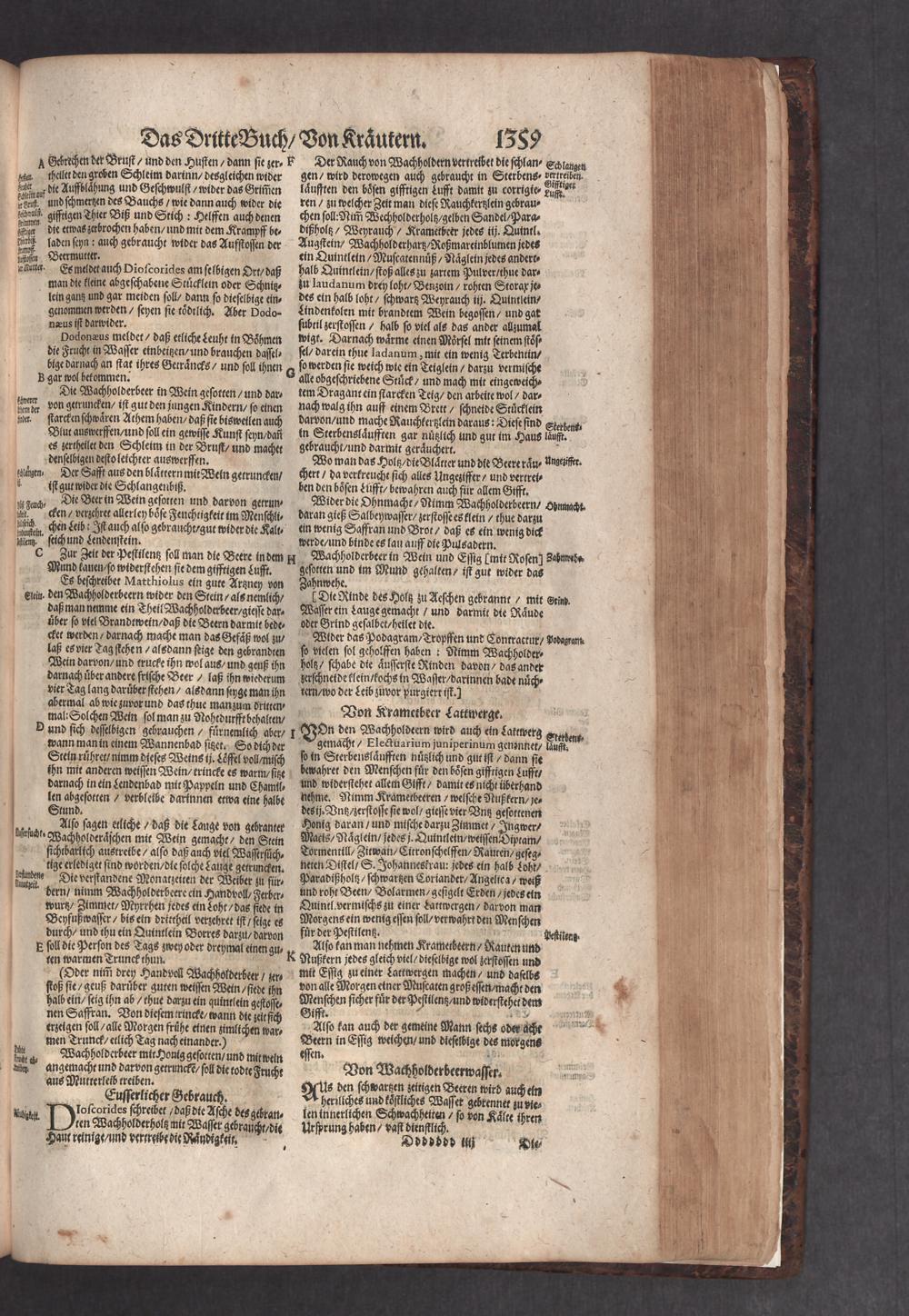 D. Jacobi Theodori Tabernaemontani, Neu vollkommen Kräuter-Buch : Darinnen Uber 3000. Kräuter/ mit schönen und kunstlichen Figuren/ auch deren Underscheid und Würckung/ samt ihren Namen in mancherley Sprachen/ beschrieben: Desgleichen auch/ wie dieselbige in allerhand Kranckheiten/ beyde der Menschen und des Viehs/ sollen angewendet und gebraucht werden/ angezeigt wird. Erstlichen durch Casparum Bauhinum D. und Profess. Basil. mit vielen neuen Figuren/ nutzlichen Artzneyen/ und anderem/ mit sonderem Fleis gebesseret/ Zum Andern Durch Hieronymum Bauhinum D. und Profess. Basil. mit sehr nutzlichen Marginalien, Synonimis, neuen Registeren und anderem vermehrt