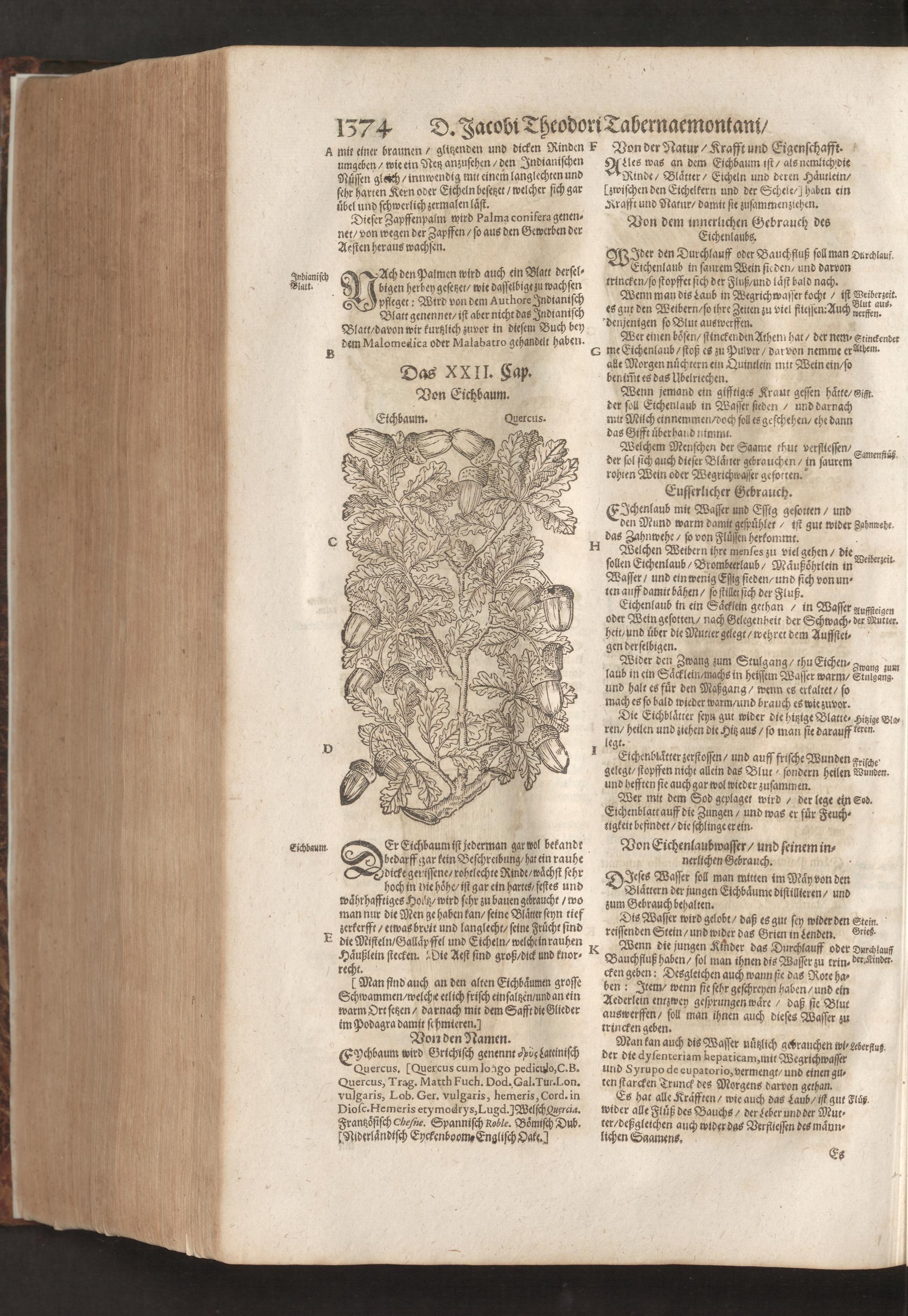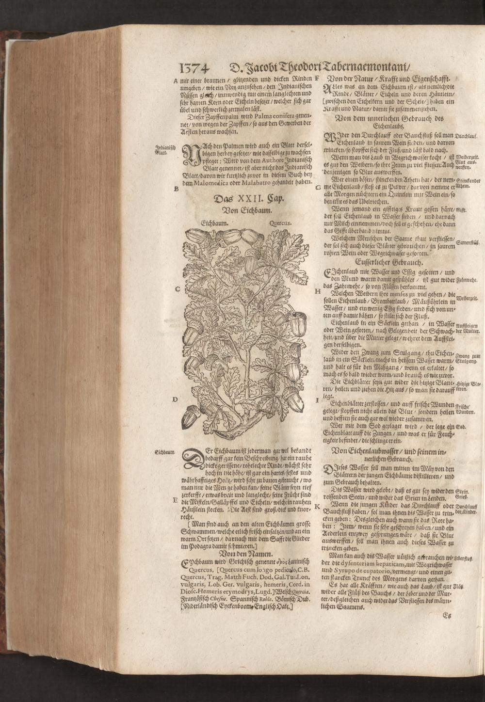 D. Jacobi Theodori Tabernaemontani, Neu vollkommen Kräuter-Buch : Darinnen Uber 3000. Kräuter/ mit schönen und kunstlichen Figuren/ auch deren Underscheid und Würckung/ samt ihren Namen in mancherley Sprachen/ beschrieben: Desgleichen auch/ wie dieselbige in allerhand Kranckheiten/ beyde der Menschen und des Viehs/ sollen angewendet und gebraucht werden/ angezeigt wird. Erstlichen durch Casparum Bauhinum D. und Profess. Basil. mit vielen neuen Figuren/ nutzlichen Artzneyen/ und anderem/ mit sonderem Fleis gebesseret/ Zum Andern Durch Hieronymum Bauhinum D. und Profess. Basil. mit sehr nutzlichen Marginalien, Synonimis, neuen Registeren und anderem vermehrt