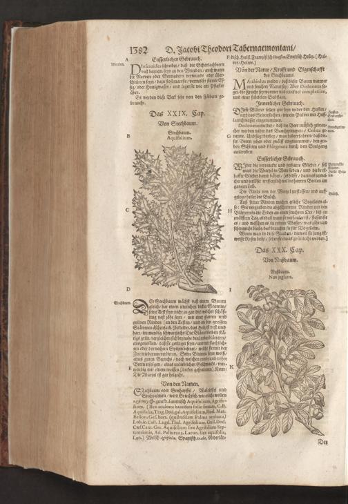 D. Jacobi Theodori Tabernaemontani, Neu vollkommen Kräuter-Buch : Darinnen Uber 3000. Kräuter/ mit schönen und kunstlichen Figuren/ auch deren Underscheid und Würckung/ samt ihren Namen in mancherley Sprachen/ beschrieben: Desgleichen auch/ wie dieselbige in allerhand Kranckheiten/ beyde der Menschen und des Viehs/ sollen angewendet und gebraucht werden/ angezeigt wird. Erstlichen durch Casparum Bauhinum D. und Profess. Basil. mit vielen neuen Figuren/ nutzlichen Artzneyen/ und anderem/ mit sonderem Fleis gebesseret/ Zum Andern Durch Hieronymum Bauhinum D. und Profess. Basil. mit sehr nutzlichen Marginalien, Synonimis, neuen Registeren und anderem vermehrt