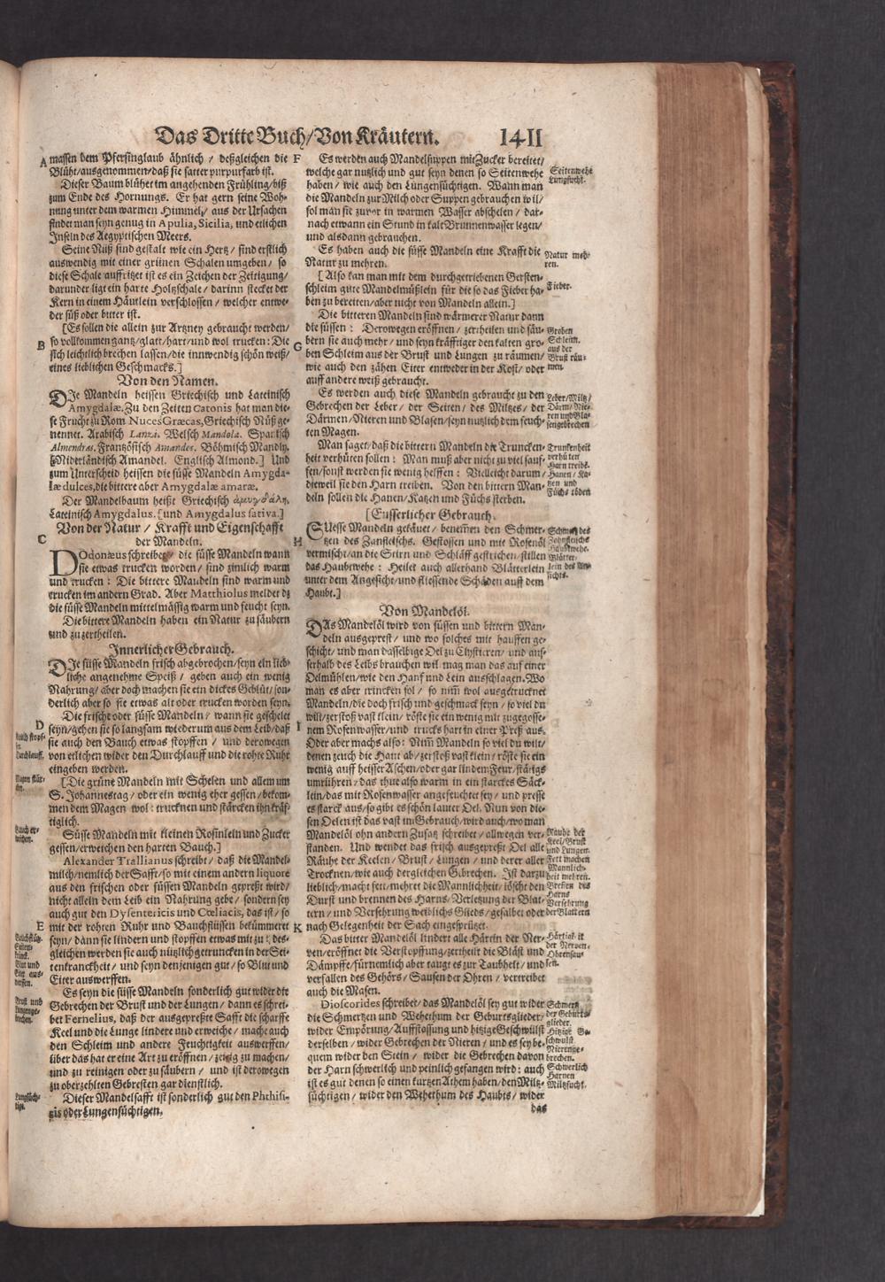 D. Jacobi Theodori Tabernaemontani, Neu vollkommen Kräuter-Buch : Darinnen Uber 3000. Kräuter/ mit schönen und kunstlichen Figuren/ auch deren Underscheid und Würckung/ samt ihren Namen in mancherley Sprachen/ beschrieben: Desgleichen auch/ wie dieselbige in allerhand Kranckheiten/ beyde der Menschen und des Viehs/ sollen angewendet und gebraucht werden/ angezeigt wird. Erstlichen durch Casparum Bauhinum D. und Profess. Basil. mit vielen neuen Figuren/ nutzlichen Artzneyen/ und anderem/ mit sonderem Fleis gebesseret/ Zum Andern Durch Hieronymum Bauhinum D. und Profess. Basil. mit sehr nutzlichen Marginalien, Synonimis, neuen Registeren und anderem vermehrt
