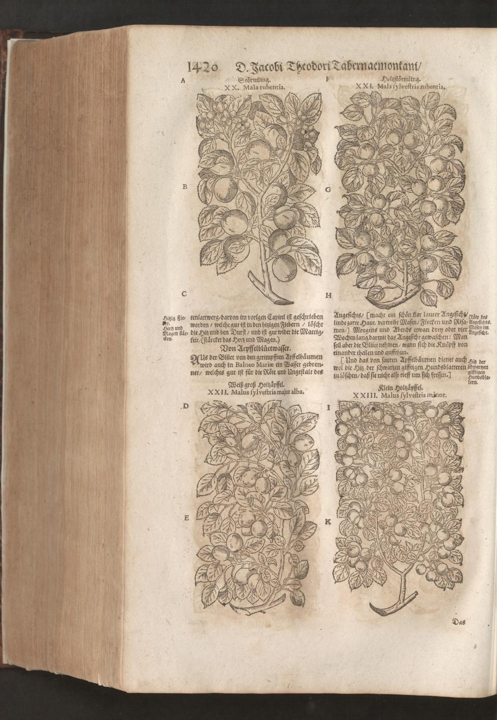 D. Jacobi Theodori Tabernaemontani, Neu vollkommen Kräuter-Buch : Darinnen Uber 3000. Kräuter/ mit schönen und kunstlichen Figuren/ auch deren Underscheid und Würckung/ samt ihren Namen in mancherley Sprachen/ beschrieben: Desgleichen auch/ wie dieselbige in allerhand Kranckheiten/ beyde der Menschen und des Viehs/ sollen angewendet und gebraucht werden/ angezeigt wird. Erstlichen durch Casparum Bauhinum D. und Profess. Basil. mit vielen neuen Figuren/ nutzlichen Artzneyen/ und anderem/ mit sonderem Fleis gebesseret/ Zum Andern Durch Hieronymum Bauhinum D. und Profess. Basil. mit sehr nutzlichen Marginalien, Synonimis, neuen Registeren und anderem vermehrt