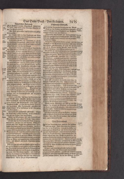 D. Jacobi Theodori Tabernaemontani, Neu vollkommen Kräuter-Buch : Darinnen Uber 3000. Kräuter/ mit schönen und kunstlichen Figuren/ auch deren Underscheid und Würckung/ samt ihren Namen in mancherley Sprachen/ beschrieben: Desgleichen auch/ wie dieselbige in allerhand Kranckheiten/ beyde der Menschen und des Viehs/ sollen angewendet und gebraucht werden/ angezeigt wird. Erstlichen durch Casparum Bauhinum D. und Profess. Basil. mit vielen neuen Figuren/ nutzlichen Artzneyen/ und anderem/ mit sonderem Fleis gebesseret/ Zum Andern Durch Hieronymum Bauhinum D. und Profess. Basil. mit sehr nutzlichen Marginalien, Synonimis, neuen Registeren und anderem vermehrt