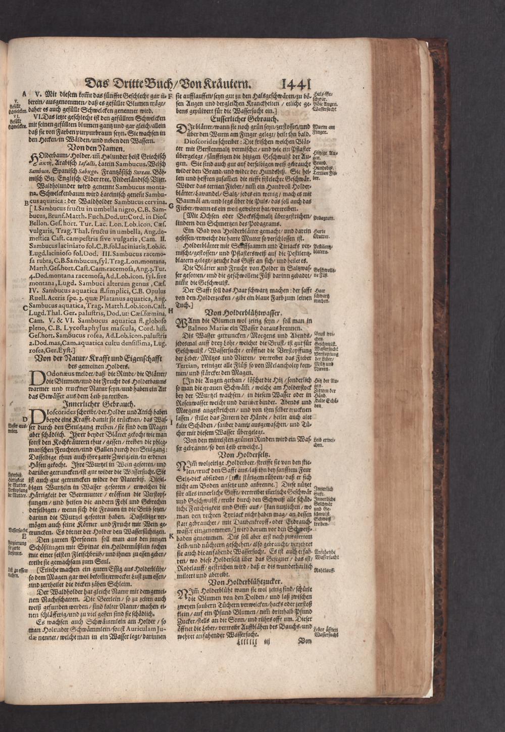 D. Jacobi Theodori Tabernaemontani, Neu vollkommen Kräuter-Buch : Darinnen Uber 3000. Kräuter/ mit schönen und kunstlichen Figuren/ auch deren Underscheid und Würckung/ samt ihren Namen in mancherley Sprachen/ beschrieben: Desgleichen auch/ wie dieselbige in allerhand Kranckheiten/ beyde der Menschen und des Viehs/ sollen angewendet und gebraucht werden/ angezeigt wird. Erstlichen durch Casparum Bauhinum D. und Profess. Basil. mit vielen neuen Figuren/ nutzlichen Artzneyen/ und anderem/ mit sonderem Fleis gebesseret/ Zum Andern Durch Hieronymum Bauhinum D. und Profess. Basil. mit sehr nutzlichen Marginalien, Synonimis, neuen Registeren und anderem vermehrt