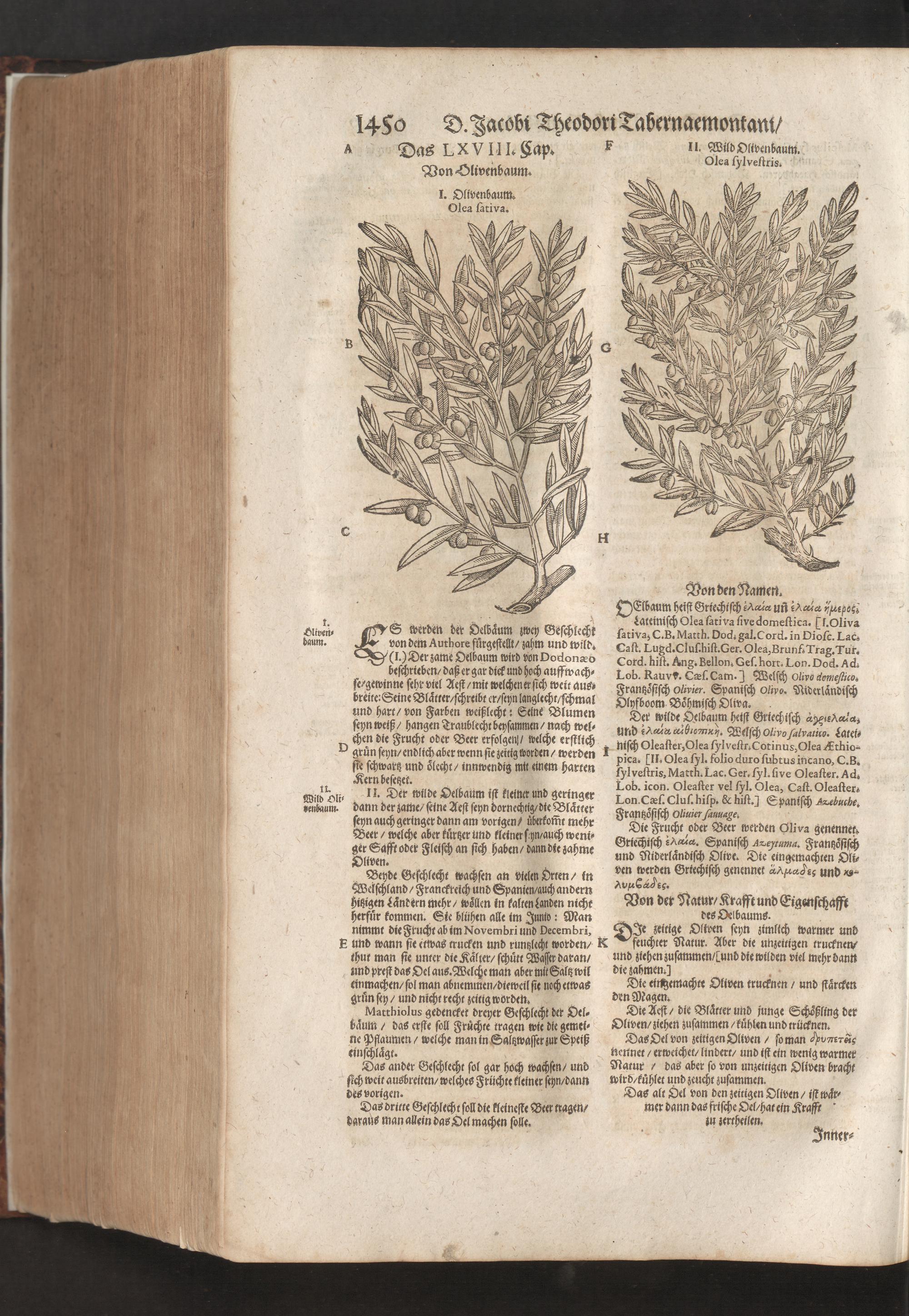 D. Jacobi Theodori Tabernaemontani, Neu vollkommen Kräuter-Buch : Darinnen Uber 3000. Kräuter/ mit schönen und kunstlichen Figuren/ auch deren Underscheid und Würckung/ samt ihren Namen in mancherley Sprachen/ beschrieben: Desgleichen auch/ wie dieselbige in allerhand Kranckheiten/ beyde der Menschen und des Viehs/ sollen angewendet und gebraucht werden/ angezeigt wird. Erstlichen durch Casparum Bauhinum D. und Profess. Basil. mit vielen neuen Figuren/ nutzlichen Artzneyen/ und anderem/ mit sonderem Fleis gebesseret/ Zum Andern Durch Hieronymum Bauhinum D. und Profess. Basil. mit sehr nutzlichen Marginalien, Synonimis, neuen Registeren und anderem vermehrt