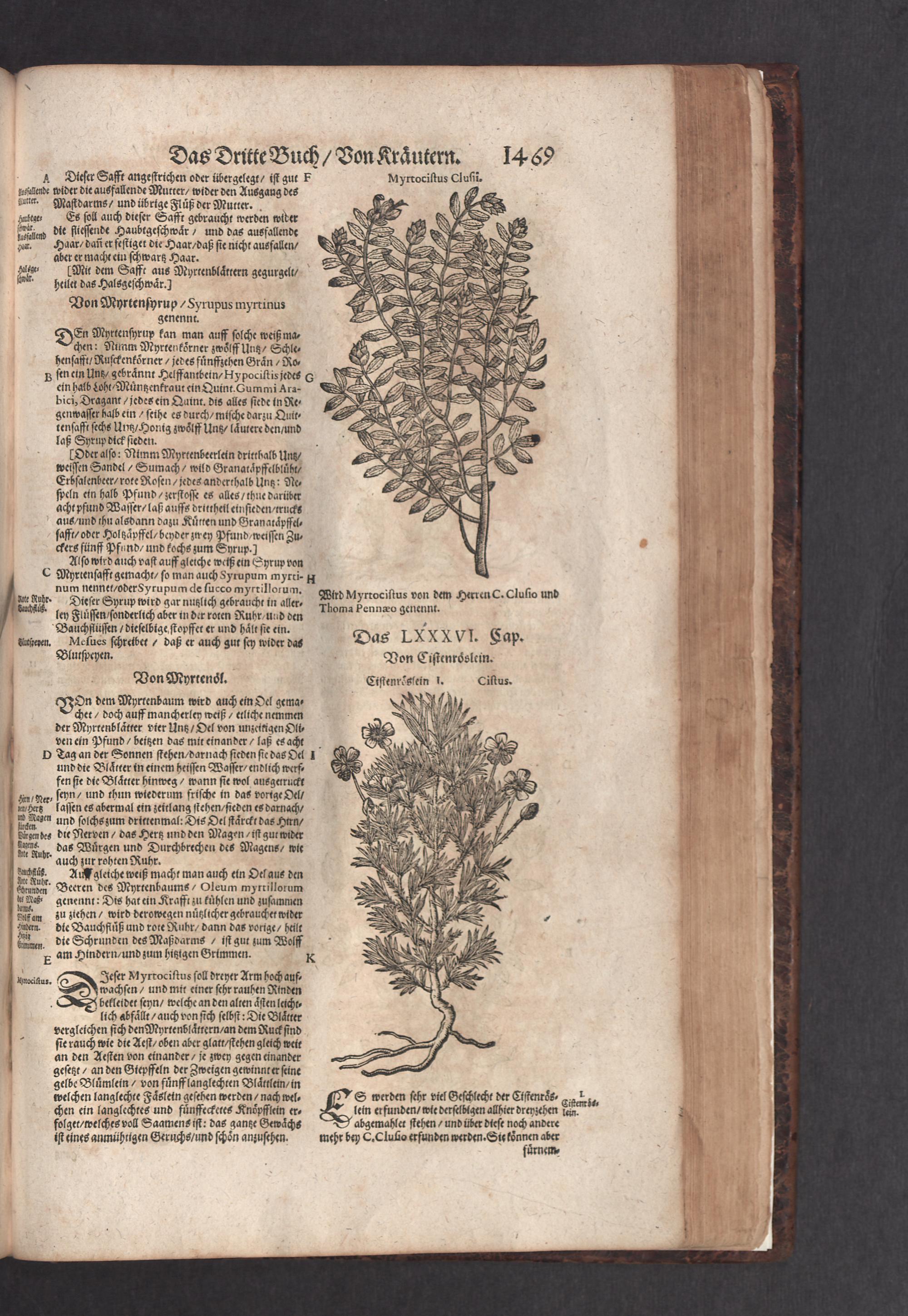 D. Jacobi Theodori Tabernaemontani, Neu vollkommen Kräuter-Buch : Darinnen Uber 3000. Kräuter/ mit schönen und kunstlichen Figuren/ auch deren Underscheid und Würckung/ samt ihren Namen in mancherley Sprachen/ beschrieben: Desgleichen auch/ wie dieselbige in allerhand Kranckheiten/ beyde der Menschen und des Viehs/ sollen angewendet und gebraucht werden/ angezeigt wird. Erstlichen durch Casparum Bauhinum D. und Profess. Basil. mit vielen neuen Figuren/ nutzlichen Artzneyen/ und anderem/ mit sonderem Fleis gebesseret/ Zum Andern Durch Hieronymum Bauhinum D. und Profess. Basil. mit sehr nutzlichen Marginalien, Synonimis, neuen Registeren und anderem vermehrt
