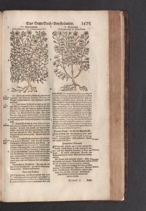 D. Jacobi Theodori Tabernaemontani, Neu vollkommen Kräuter-Buch : Darinnen Uber 3000. Kräuter/ mit schönen und kunstlichen Figuren/ auch deren Underscheid und Würckung/ samt ihren Namen in mancherley Sprachen/ beschrieben: Desgleichen auch/ wie dieselbige in allerhand Kranckheiten/ beyde der Menschen und des Viehs/ sollen angewendet und gebraucht werden/ angezeigt wird. Erstlichen durch Casparum Bauhinum D. und Profess. Basil. mit vielen neuen Figuren/ nutzlichen Artzneyen/ und anderem/ mit sonderem Fleis gebesseret/ Zum Andern Durch Hieronymum Bauhinum D. und Profess. Basil. mit sehr nutzlichen Marginalien, Synonimis, neuen Registeren und anderem vermehrt