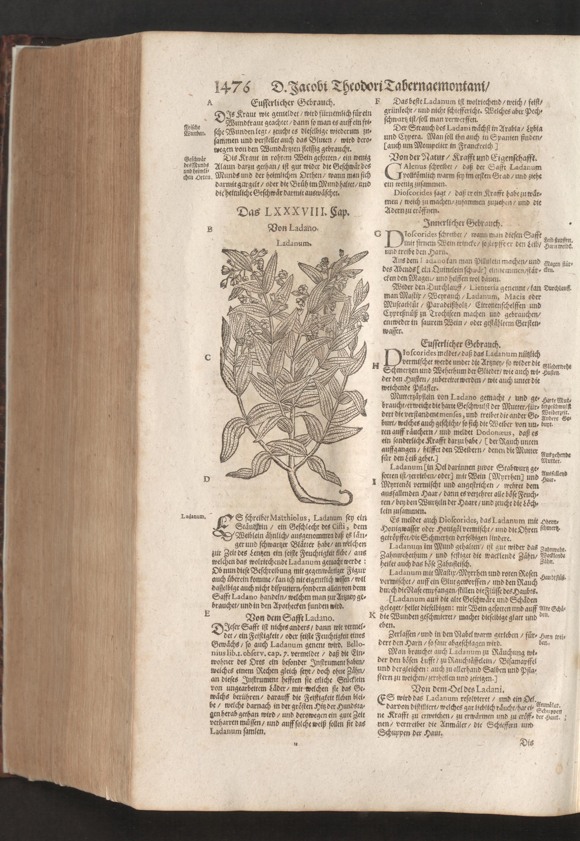 D. Jacobi Theodori Tabernaemontani, Neu vollkommen Kräuter-Buch : Darinnen Uber 3000. Kräuter/ mit schönen und kunstlichen Figuren/ auch deren Underscheid und Würckung/ samt ihren Namen in mancherley Sprachen/ beschrieben: Desgleichen auch/ wie dieselbige in allerhand Kranckheiten/ beyde der Menschen und des Viehs/ sollen angewendet und gebraucht werden/ angezeigt wird. Erstlichen durch Casparum Bauhinum D. und Profess. Basil. mit vielen neuen Figuren/ nutzlichen Artzneyen/ und anderem/ mit sonderem Fleis gebesseret/ Zum Andern Durch Hieronymum Bauhinum D. und Profess. Basil. mit sehr nutzlichen Marginalien, Synonimis, neuen Registeren und anderem vermehrt