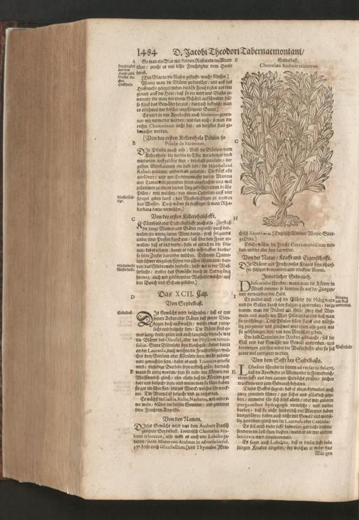 D. Jacobi Theodori Tabernaemontani, Neu vollkommen Kräuter-Buch : Darinnen Uber 3000. Kräuter/ mit schönen und kunstlichen Figuren/ auch deren Underscheid und Würckung/ samt ihren Namen in mancherley Sprachen/ beschrieben: Desgleichen auch/ wie dieselbige in allerhand Kranckheiten/ beyde der Menschen und des Viehs/ sollen angewendet und gebraucht werden/ angezeigt wird. Erstlichen durch Casparum Bauhinum D. und Profess. Basil. mit vielen neuen Figuren/ nutzlichen Artzneyen/ und anderem/ mit sonderem Fleis gebesseret/ Zum Andern Durch Hieronymum Bauhinum D. und Profess. Basil. mit sehr nutzlichen Marginalien, Synonimis, neuen Registeren und anderem vermehrt