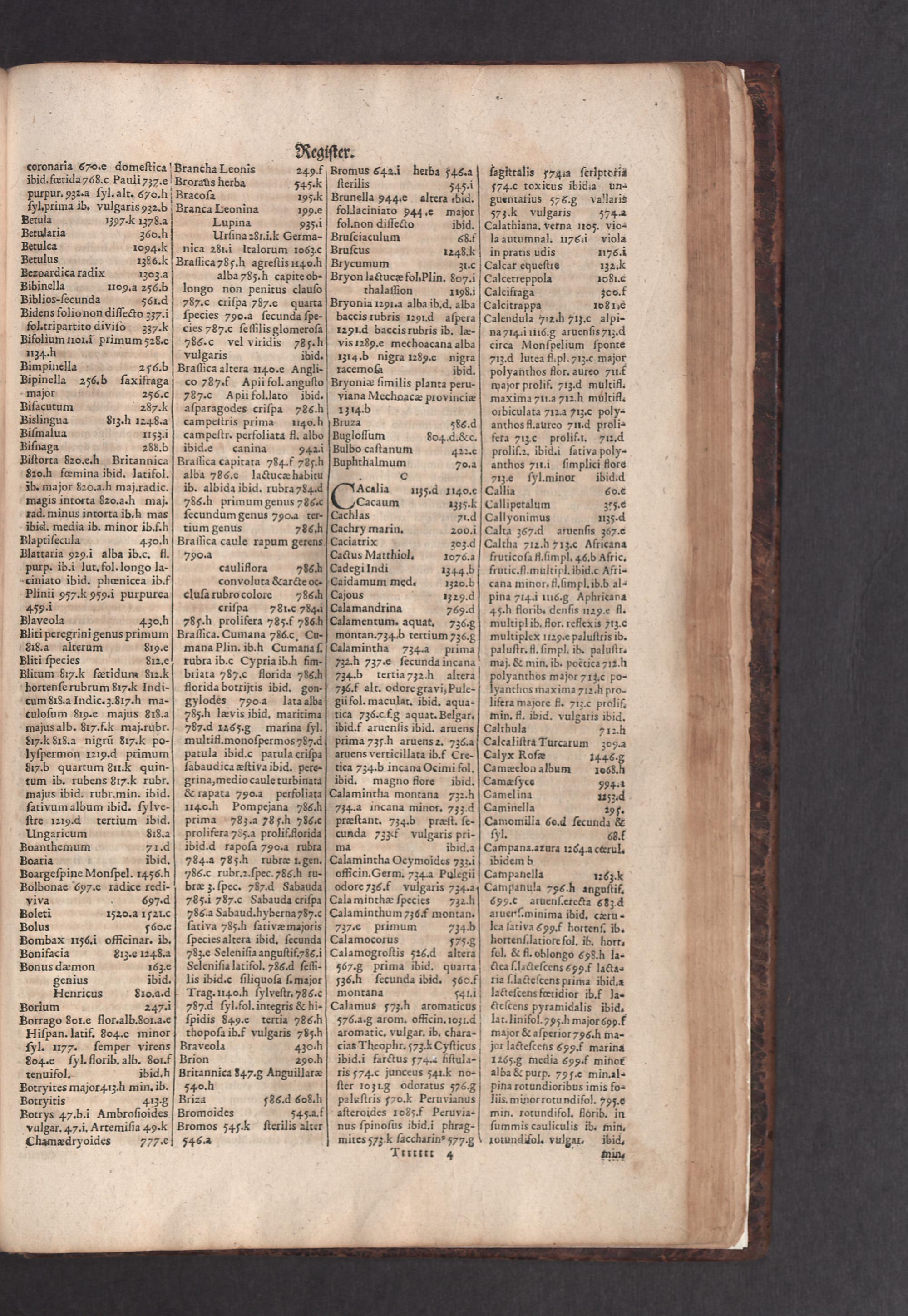 D. Jacobi Theodori Tabernaemontani, Neu vollkommen Kräuter-Buch : Darinnen Uber 3000. Kräuter/ mit schönen und kunstlichen Figuren/ auch deren Underscheid und Würckung/ samt ihren Namen in mancherley Sprachen/ beschrieben: Desgleichen auch/ wie dieselbige in allerhand Kranckheiten/ beyde der Menschen und des Viehs/ sollen angewendet und gebraucht werden/ angezeigt wird. Erstlichen durch Casparum Bauhinum D. und Profess. Basil. mit vielen neuen Figuren/ nutzlichen Artzneyen/ und anderem/ mit sonderem Fleis gebesseret/ Zum Andern Durch Hieronymum Bauhinum D. und Profess. Basil. mit sehr nutzlichen Marginalien, Synonimis, neuen Registeren und anderem vermehrt