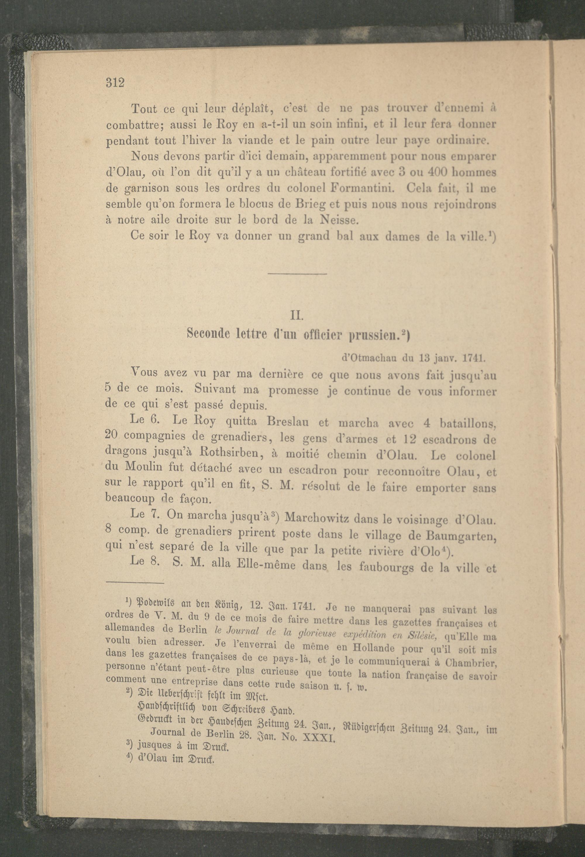 X. Die Schlacht bei Mollwitz. Lettre d'un officier prussien.