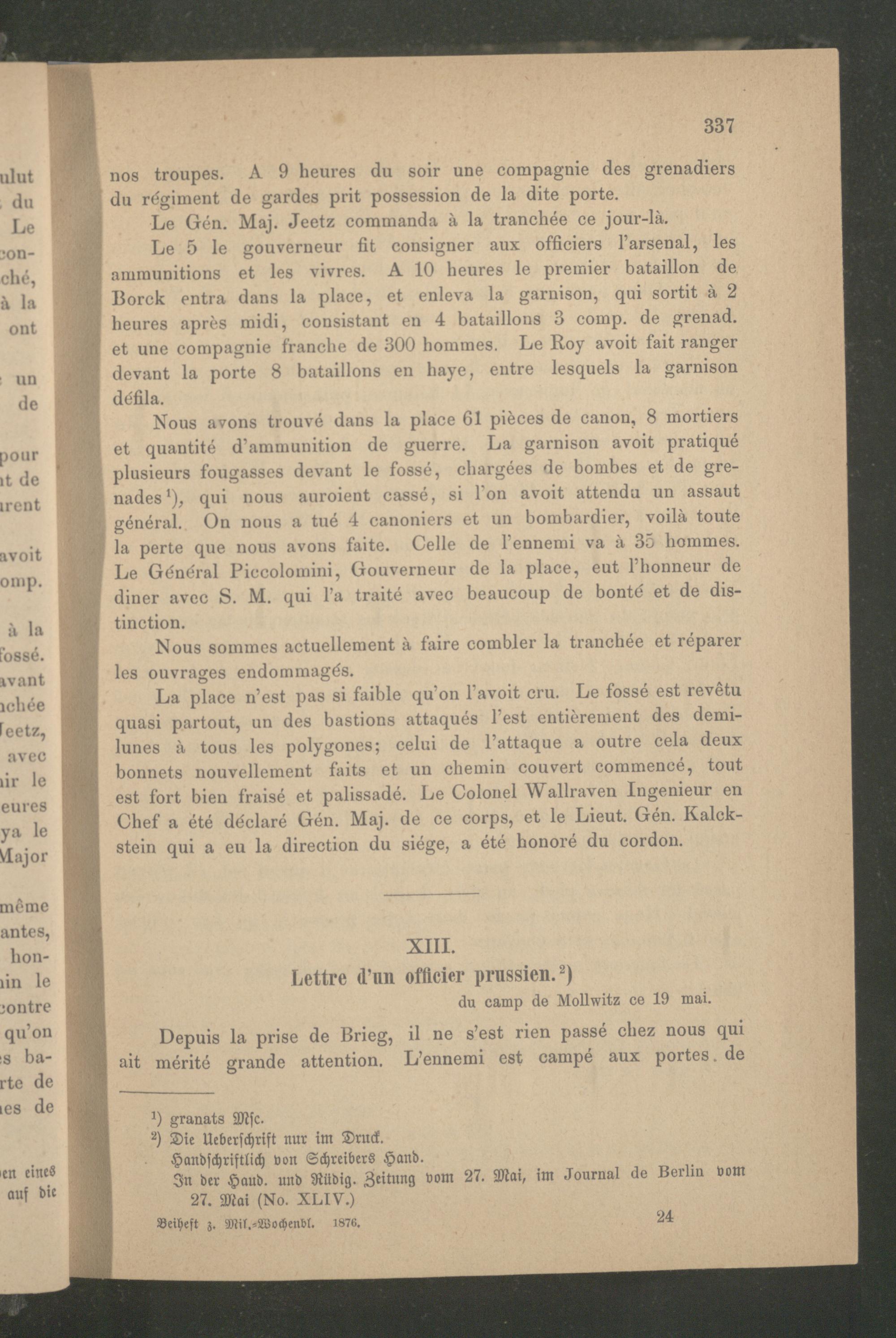 X. Die Schlacht bei Mollwitz. Lettre d'un officier prussien.