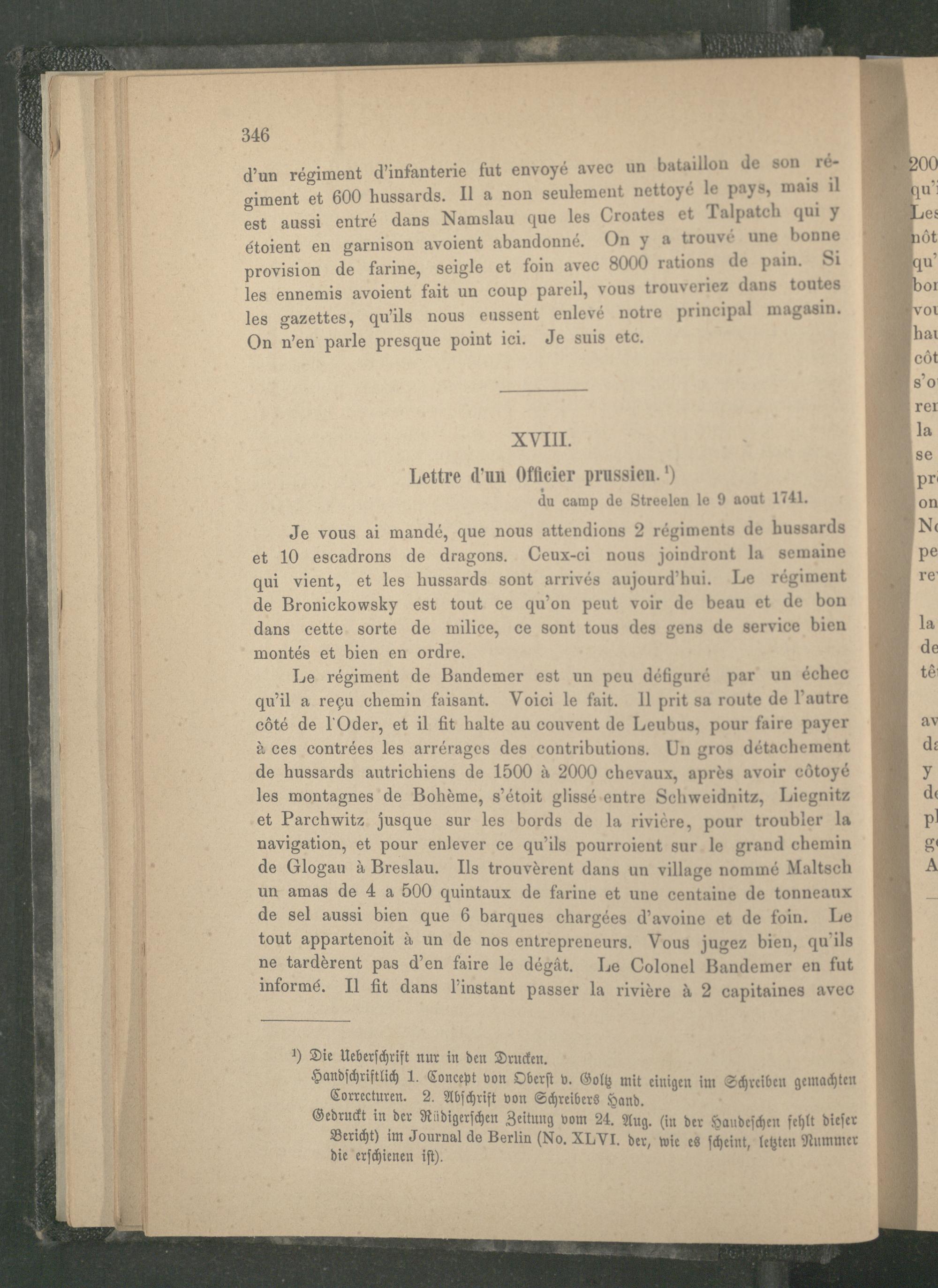 X. Die Schlacht bei Mollwitz. Lettre d'un officier prussien.