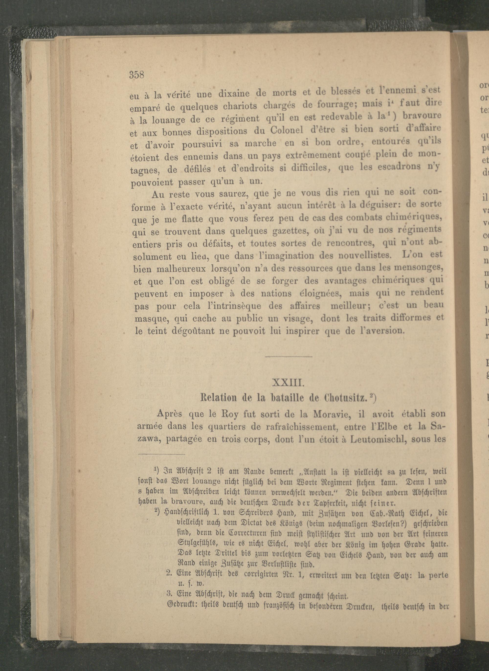 XXIII. Relation de la bataille de Chotusitz.