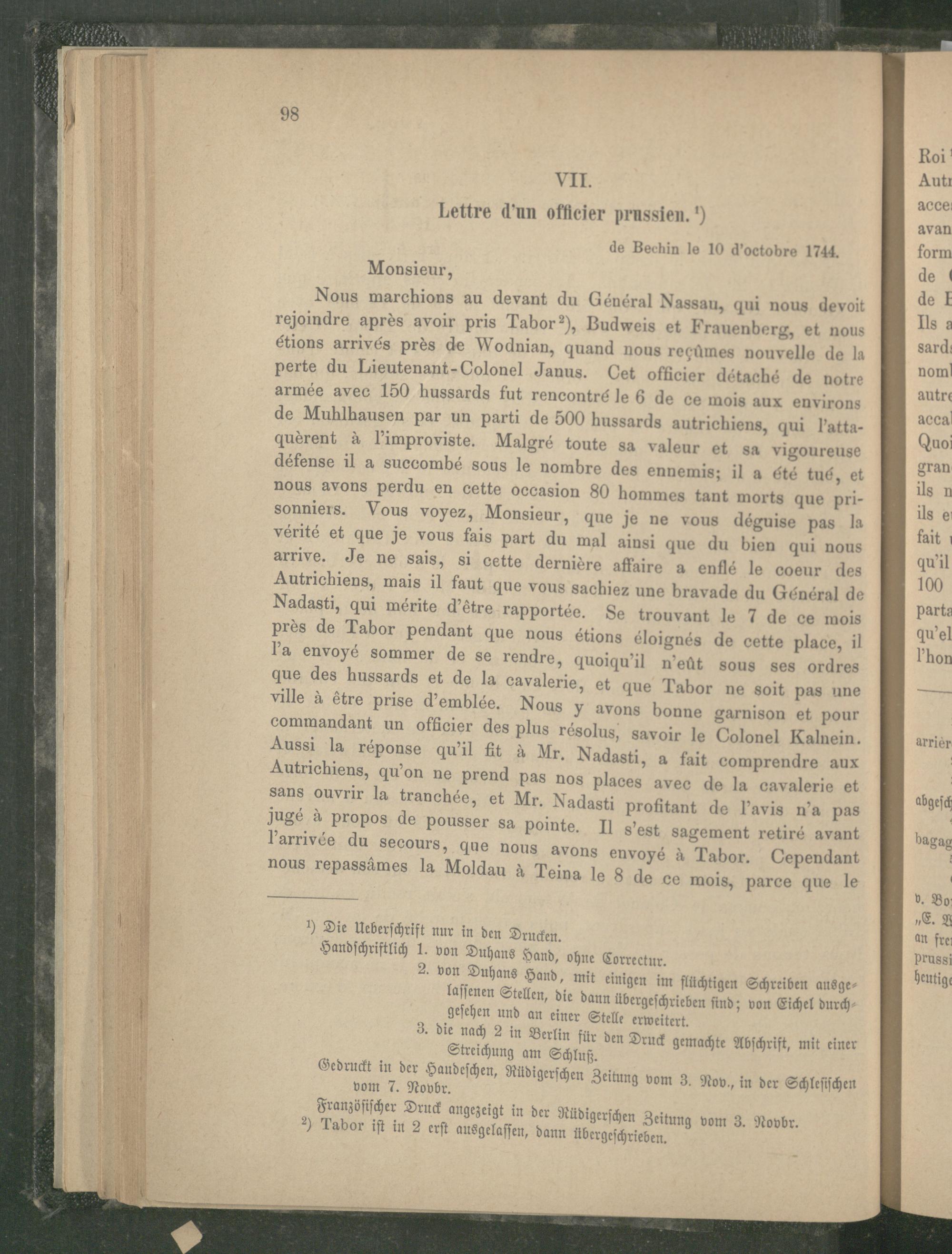 VII. Lettre d'un officier prussien.