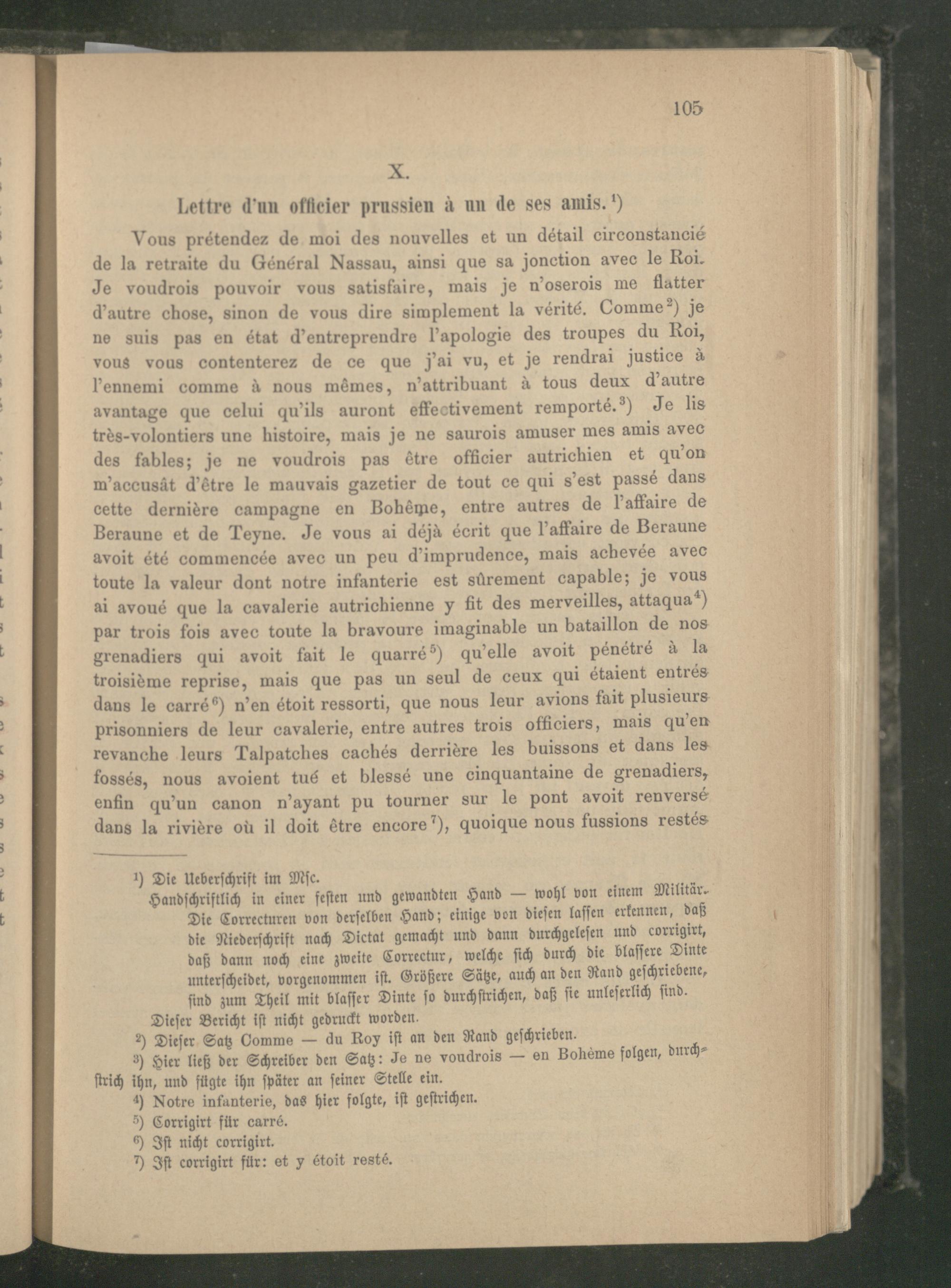 X. Lettre d'un officier prussien à un de ses amis.