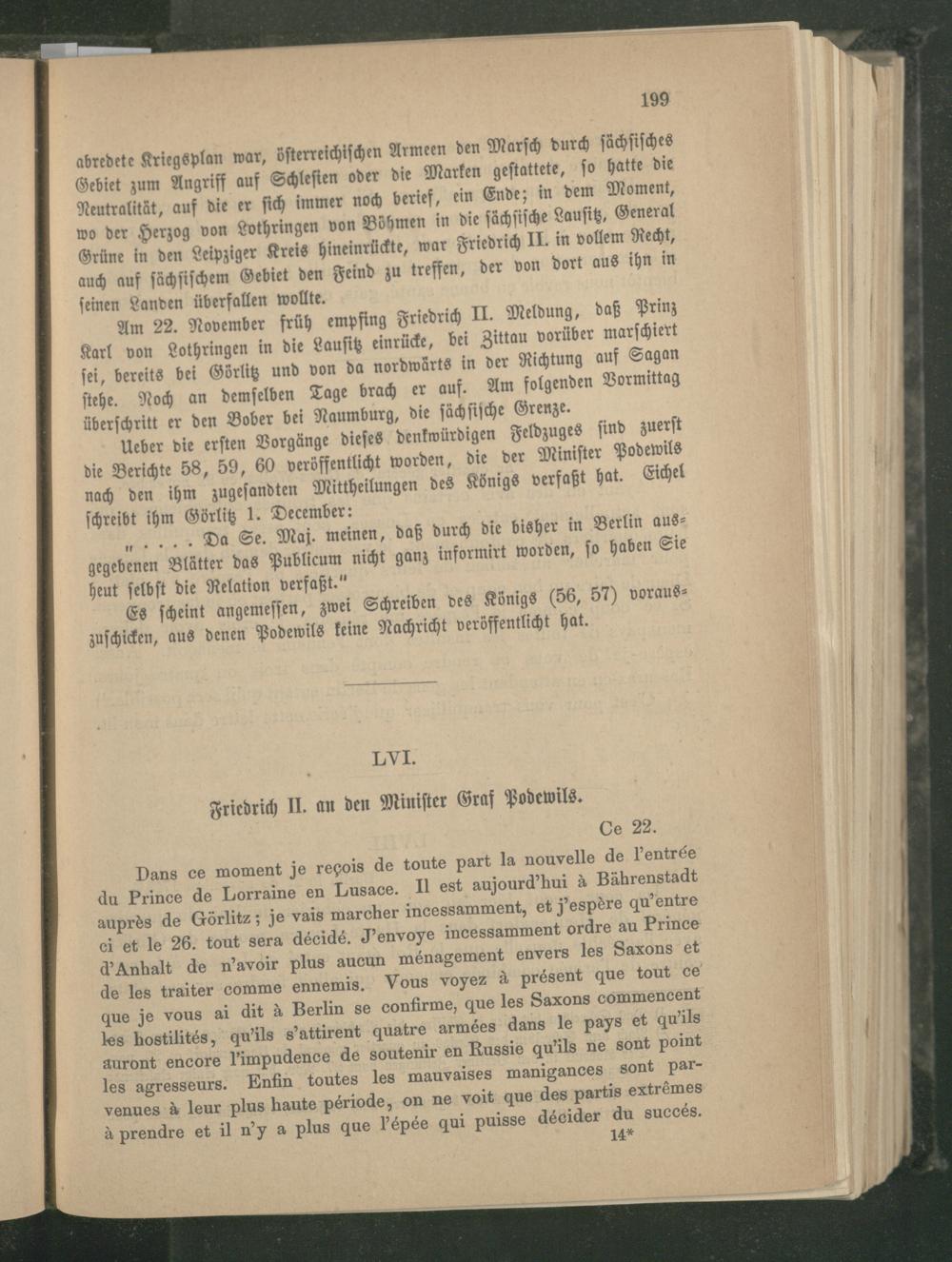 LVI. Friedrich II. an den Minister Graf Podewils.