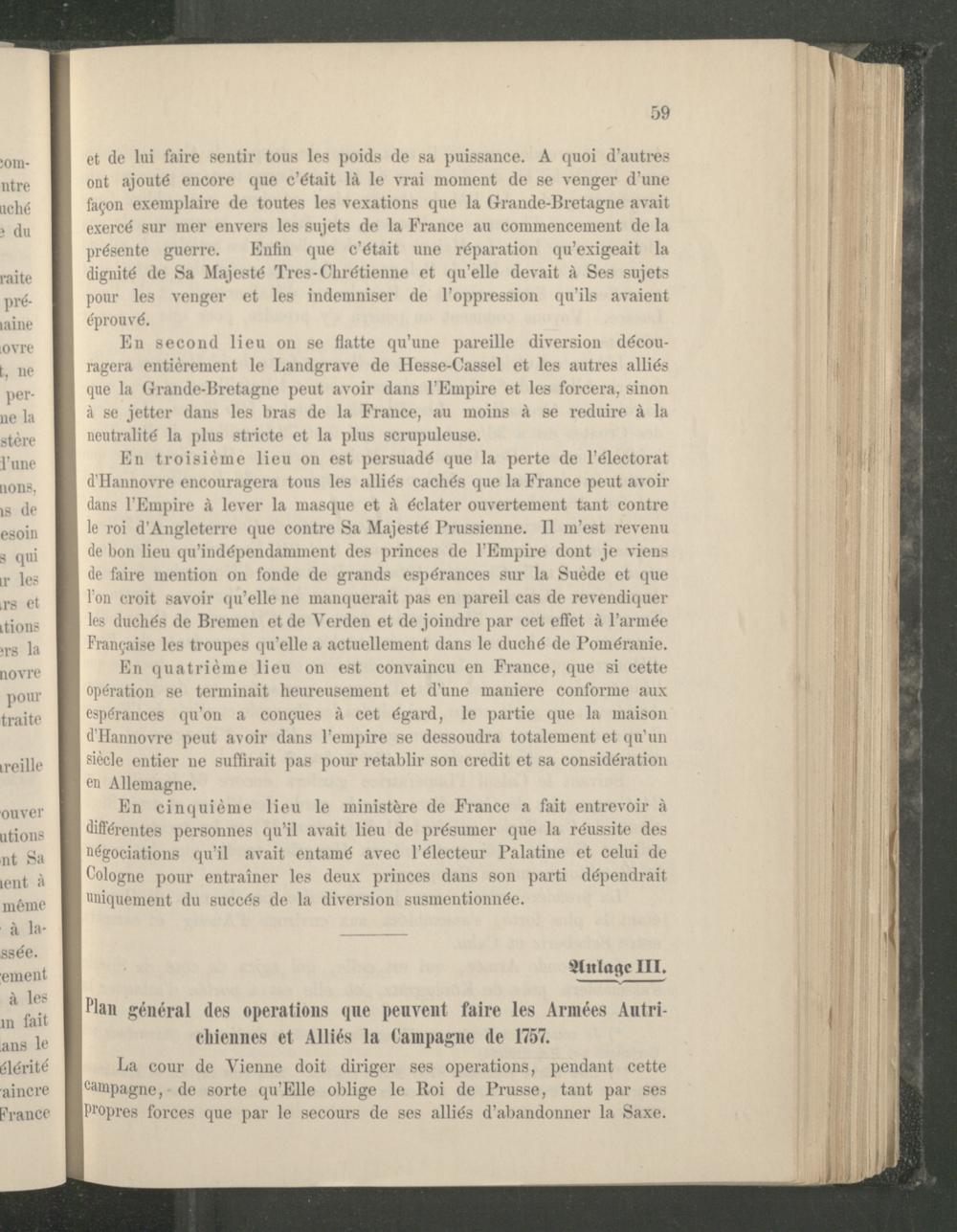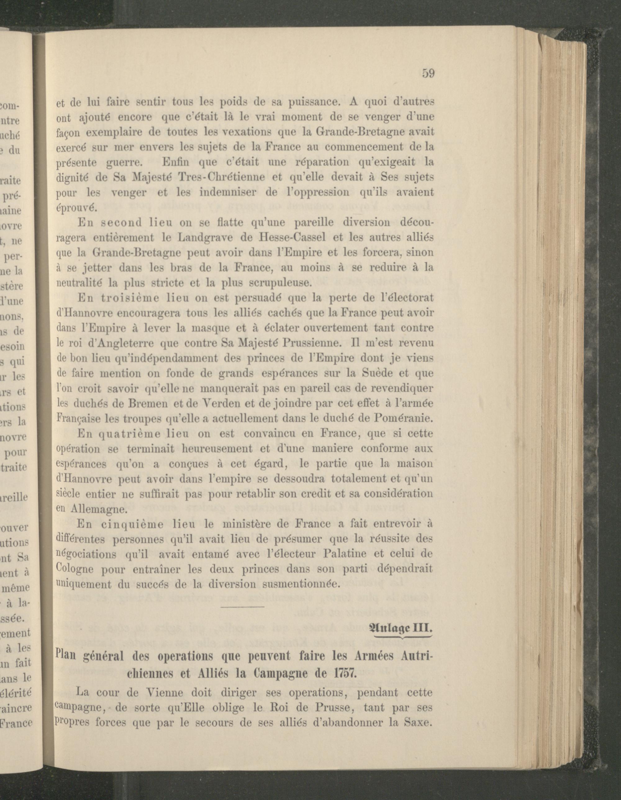 Anlage III. Plan général des operations que peuvent faire les Armées Autrichiennes et Alliés la Campagne de 1757.