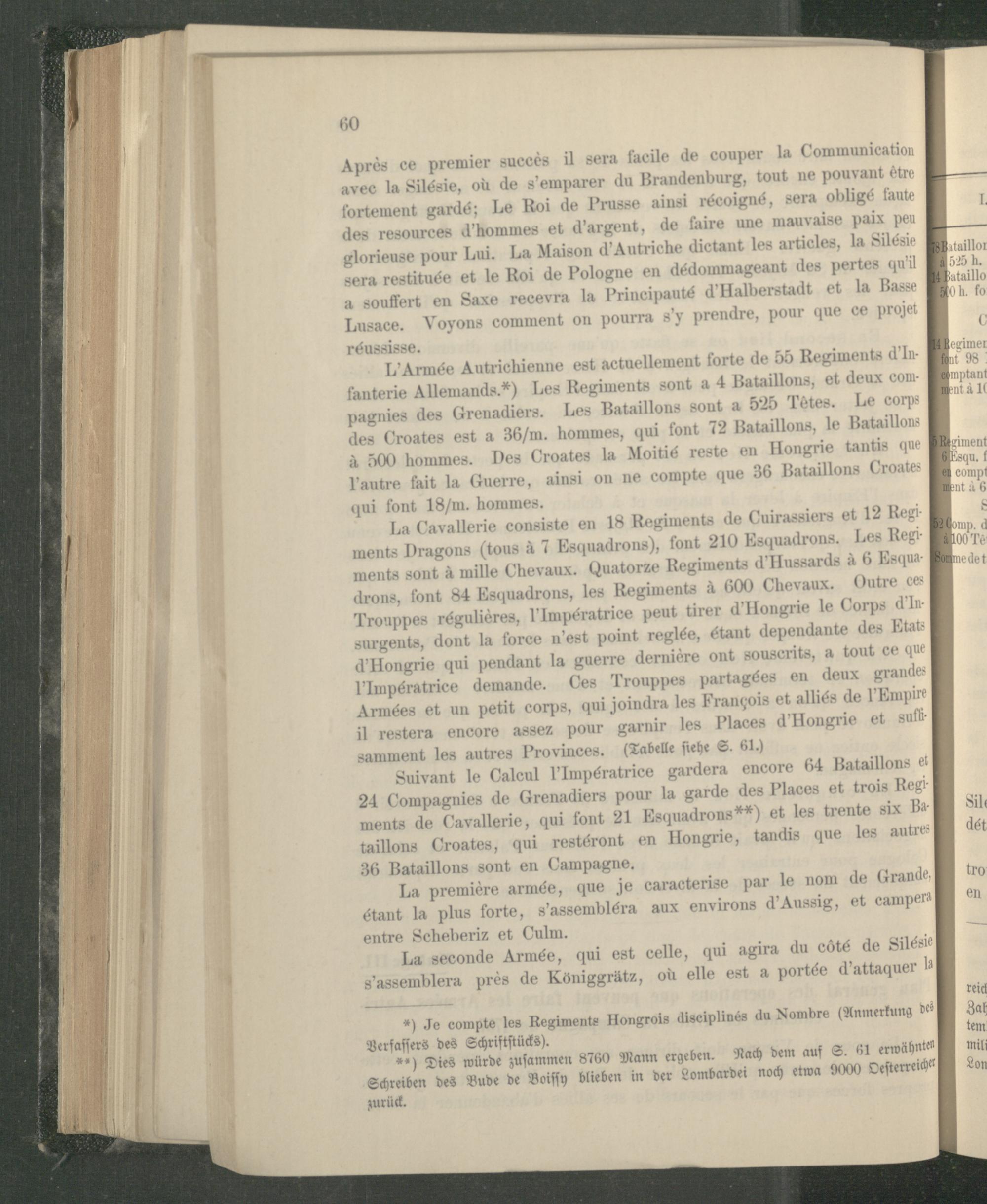 Anlage IV. Raisonnement sur les operations, que l'armée Prussienne peut faire la Campagne prochaine l'An 1757.