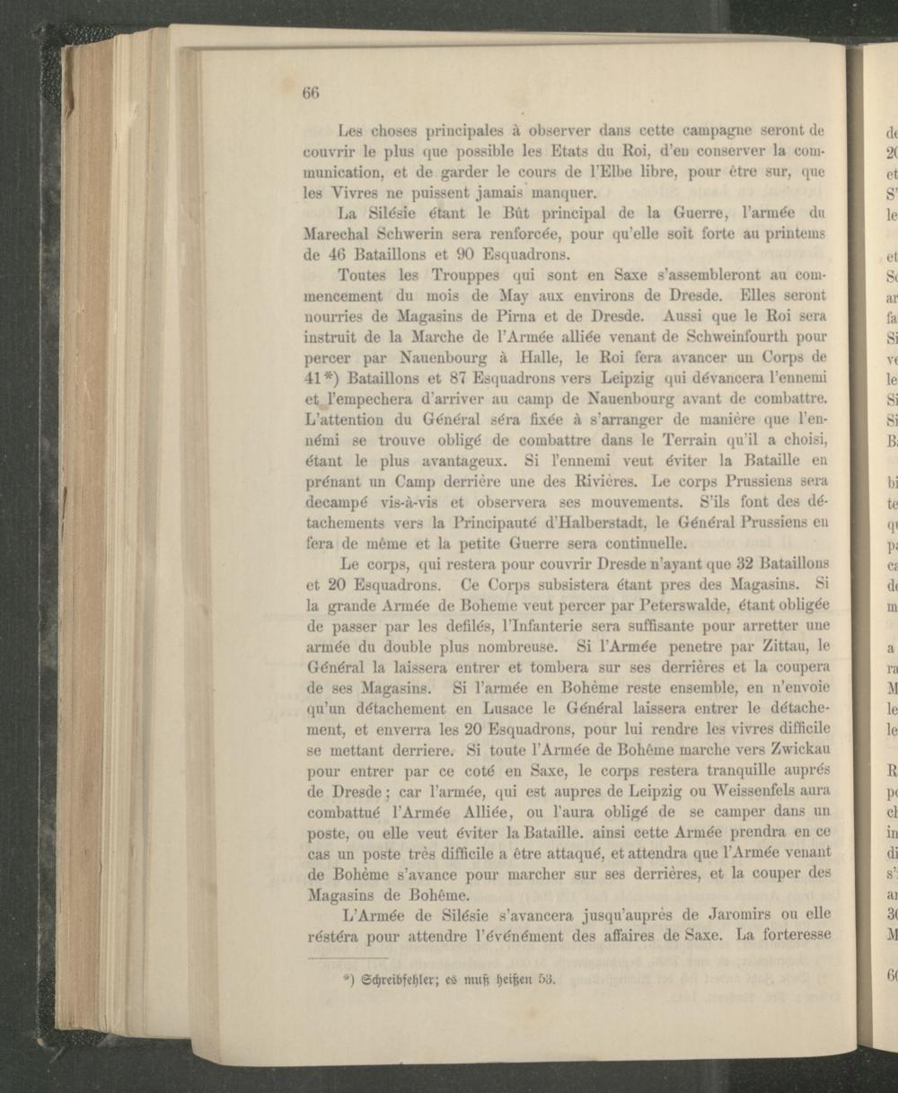 Anlage IV. Raisonnement sur les operations, que l'armée Prussienne peut faire la Campagne prochaine l'An 1757.