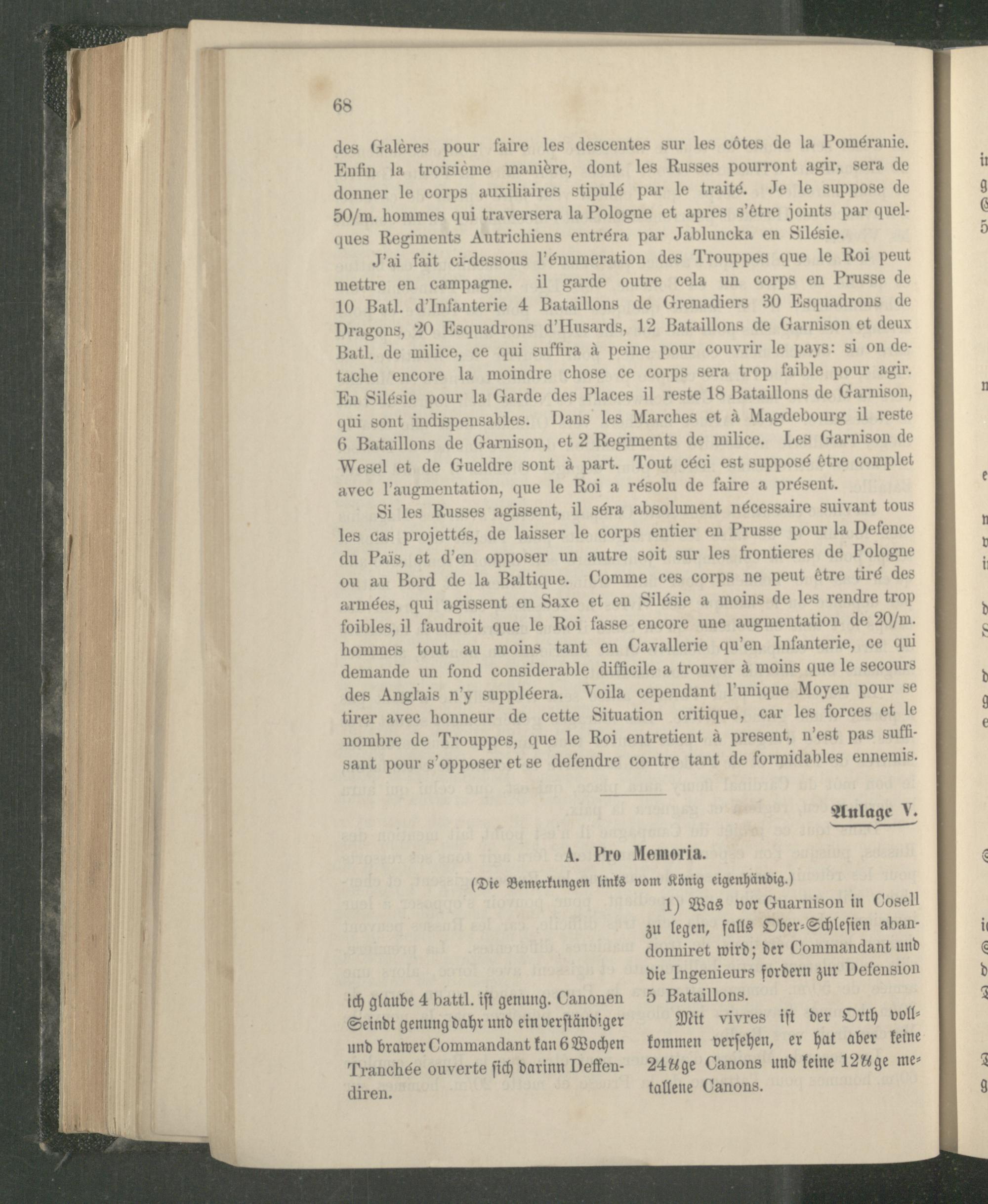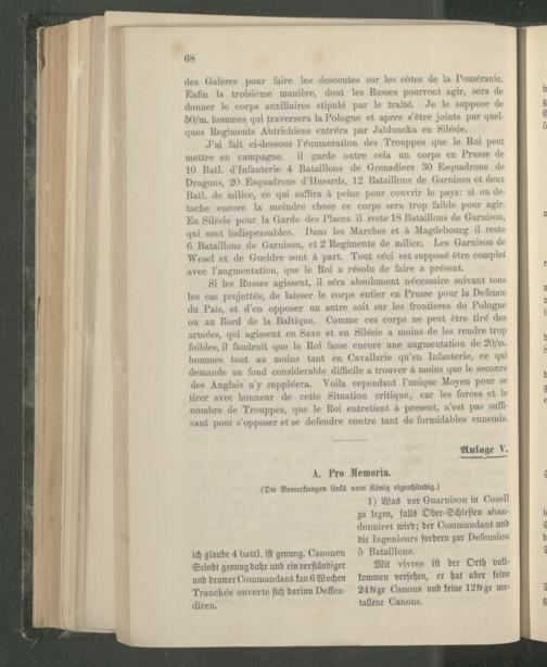 Anlage IV. Raisonnement sur les operations, que l'armée Prussienne peut faire la Campagne prochaine l'An 1757.