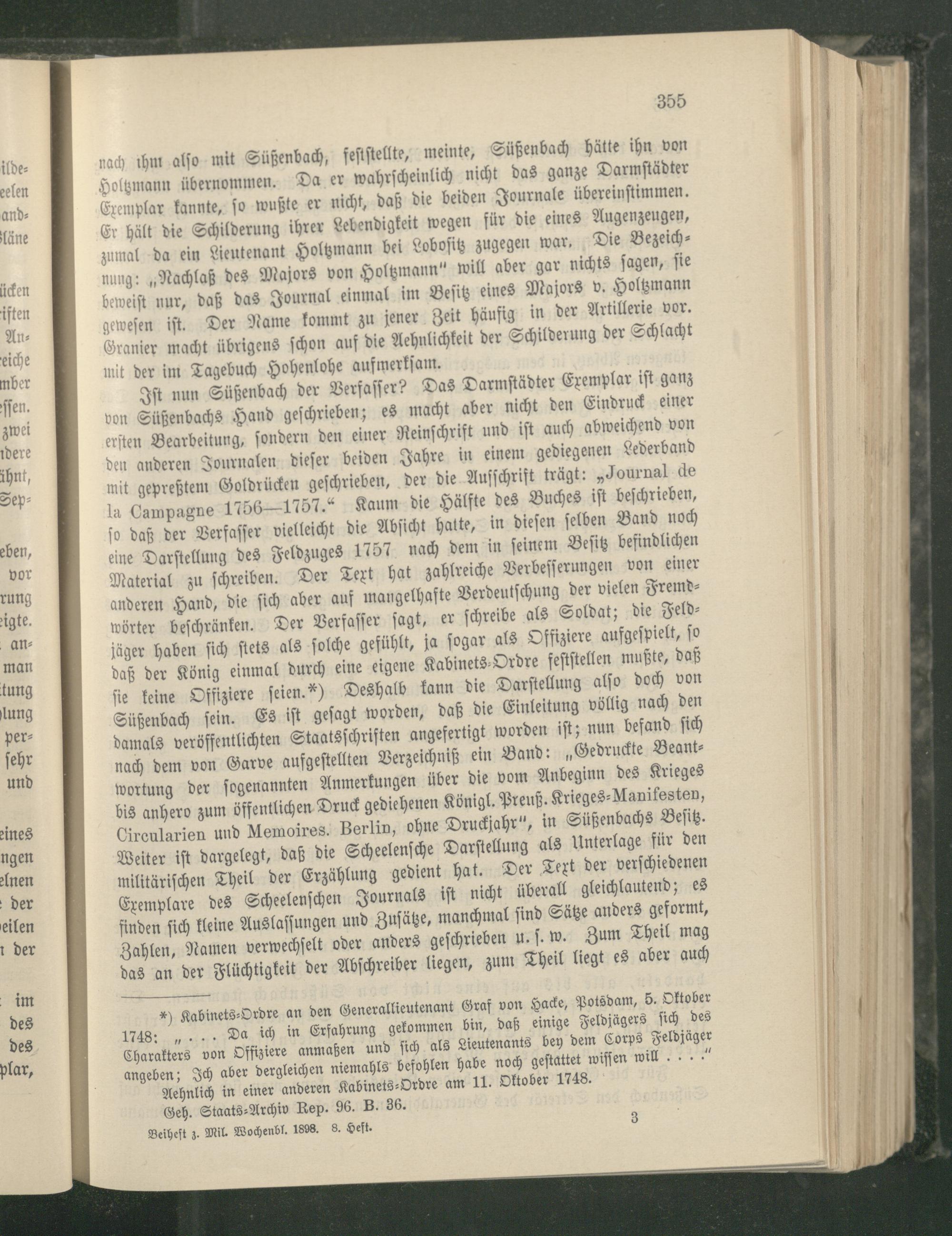 Die Süßenbachschen Handschriften zur Geschichte des Siebenjährigen Krieges in der Großherzoglich Hessischen Hofbibliothek zu Darmstadt / Bearbeitet in der Kriegsgeschichtlichen Abtheilung II des Großen Generalstabes