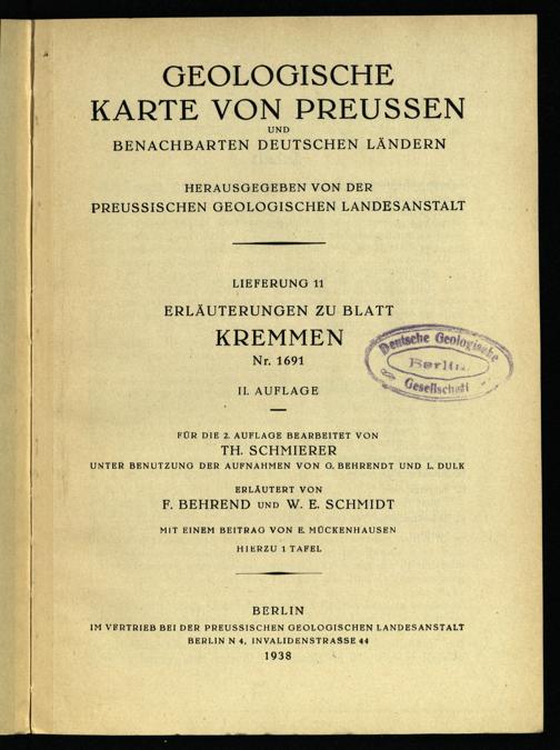 1691 = Neue Nr. 3244 (1938) Kremmen / geolog. und agronom. ... bearb. durch Th. Schmierer ...