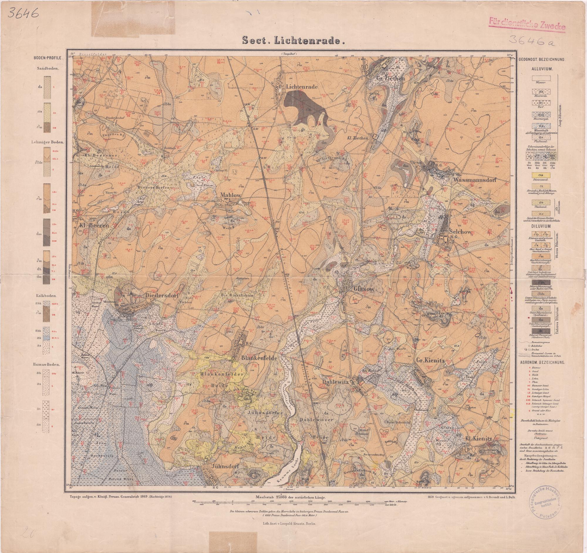 [Neue Nr. 3646] (1878) Sect. Lichtenrade : [geologische Karte] / geognost. und agronom. aufgenommen von G. Berendt und L. Dulk