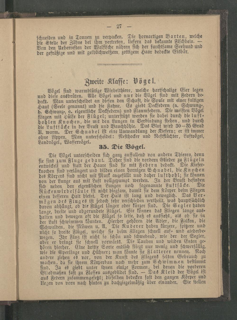 Zweite Klasse: Vögel.