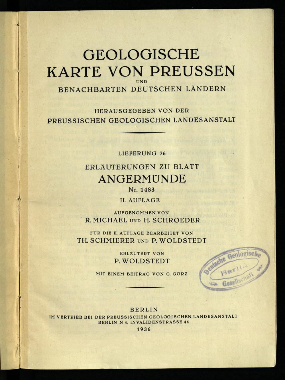 Grad-Abtheilung 28, Blatt 59 [Neue Nr. 2950] (1899) Angermünde : geologische Karte / geognostisch und agronomisch bearb. durch R. Michael und H. Schröder 1895