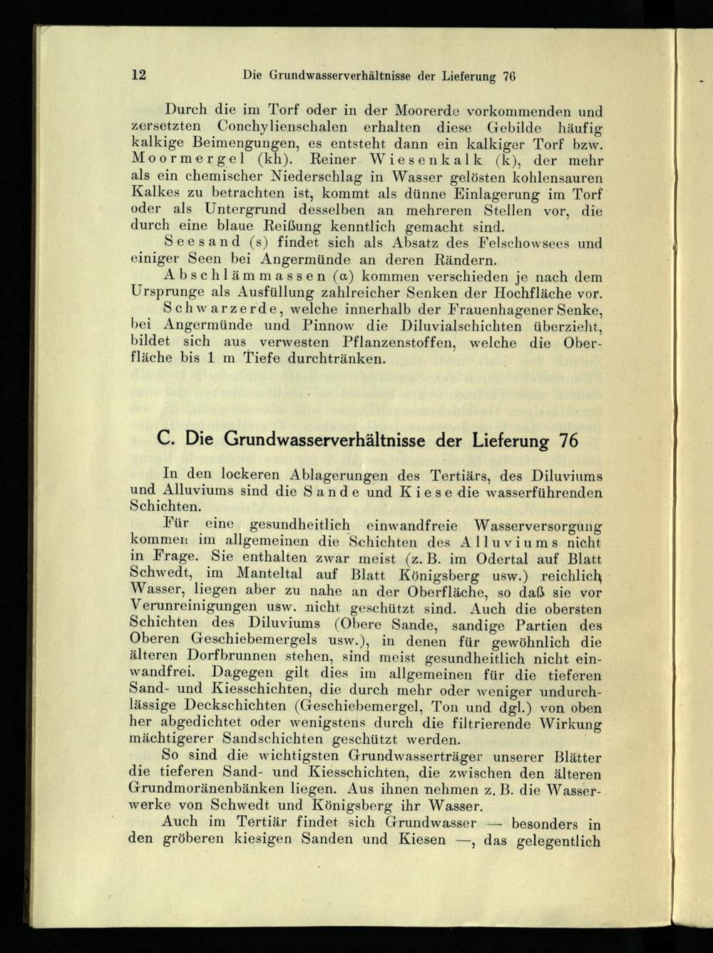 C. Die Grundwasserverhältnisse der Lieferung 76