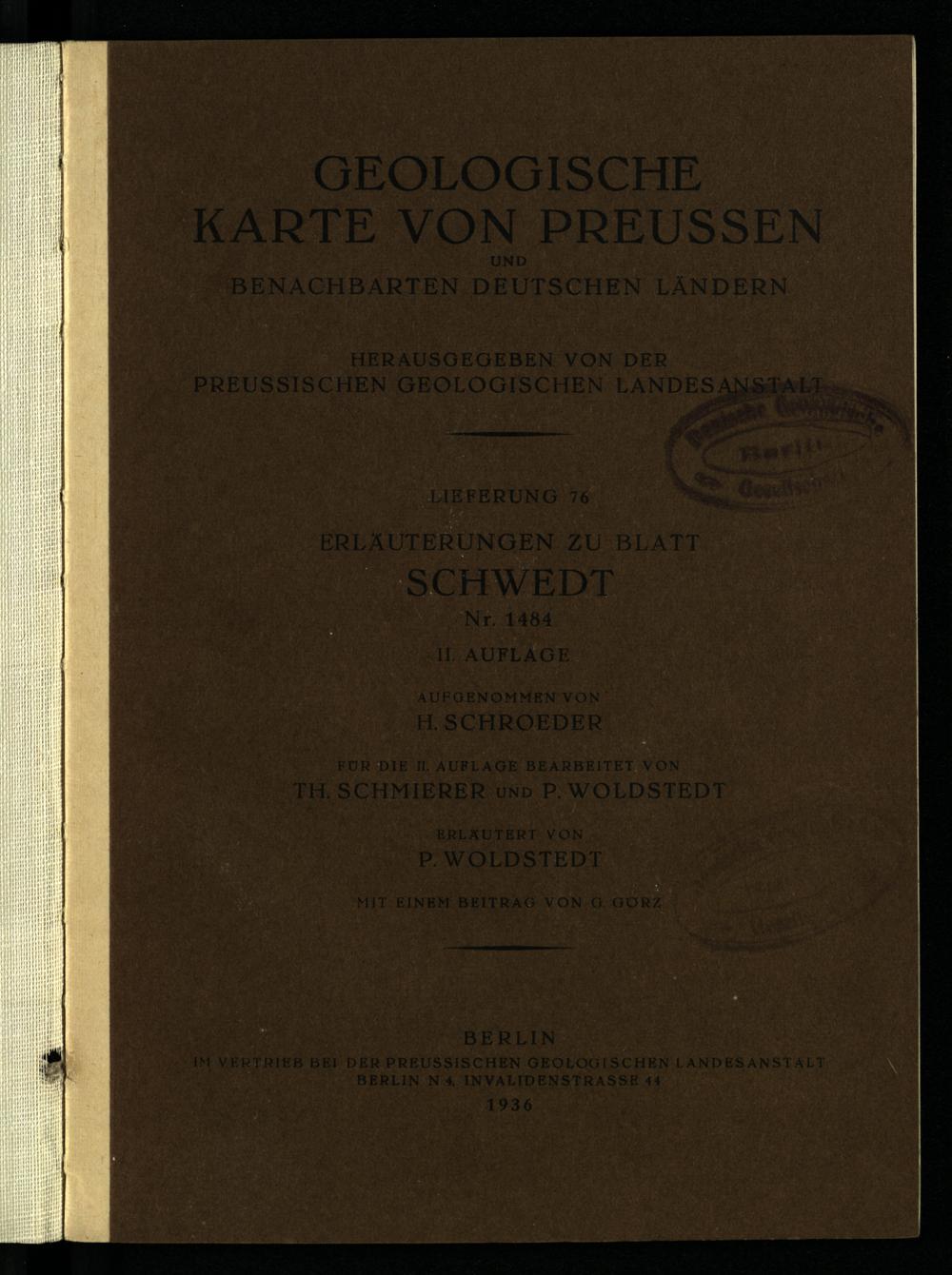 Grad-Abtheilung 28, Blatt 60 [Neue Nr. 2951] (1936) Schwedt : geologische Karte / geogn. bearb. durch Th. Schmierer ..
