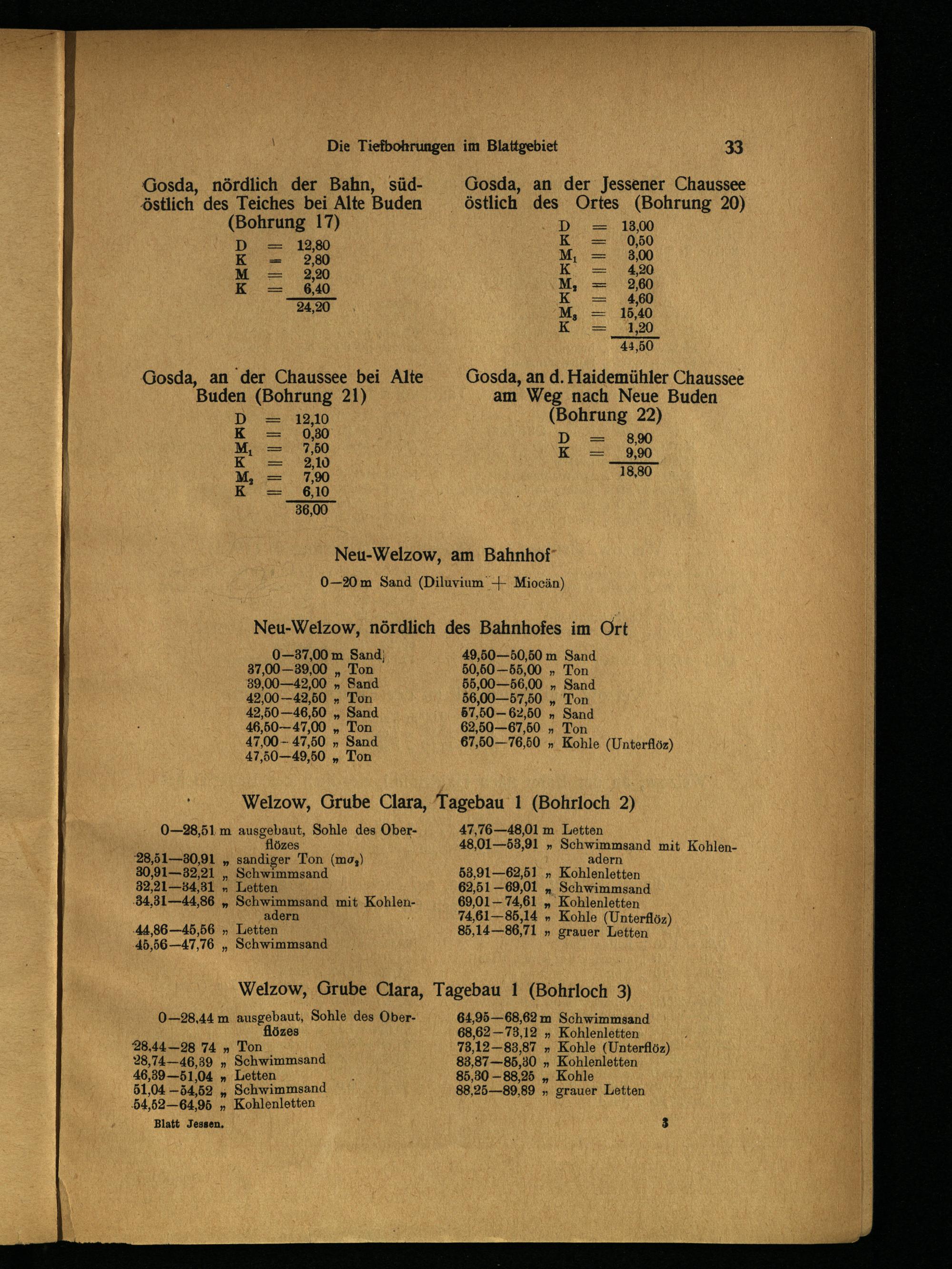 Die Tiefbohrungen im Blattgebiet