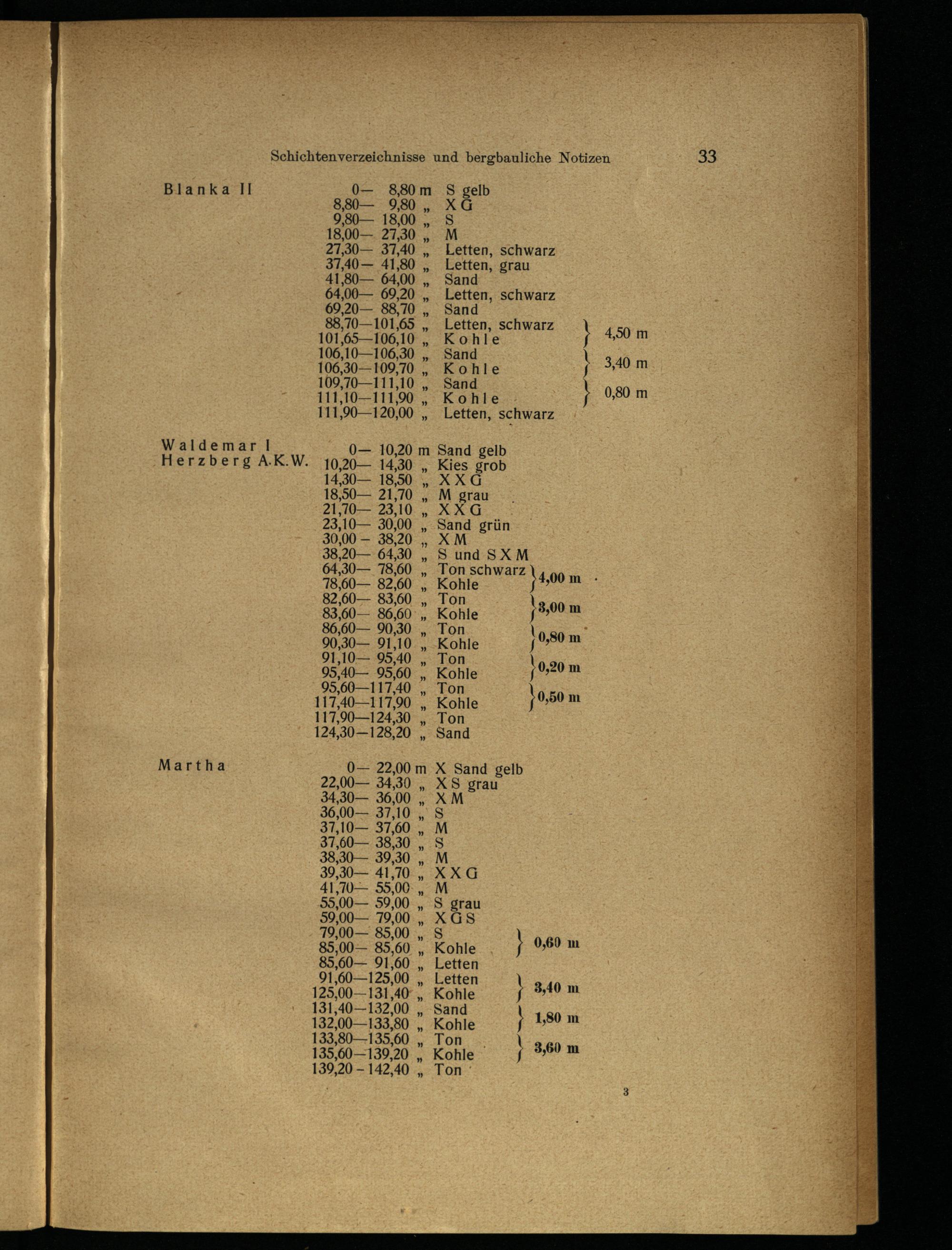 IV. Schichtenverzeichnisse und bergbauliche Notizen