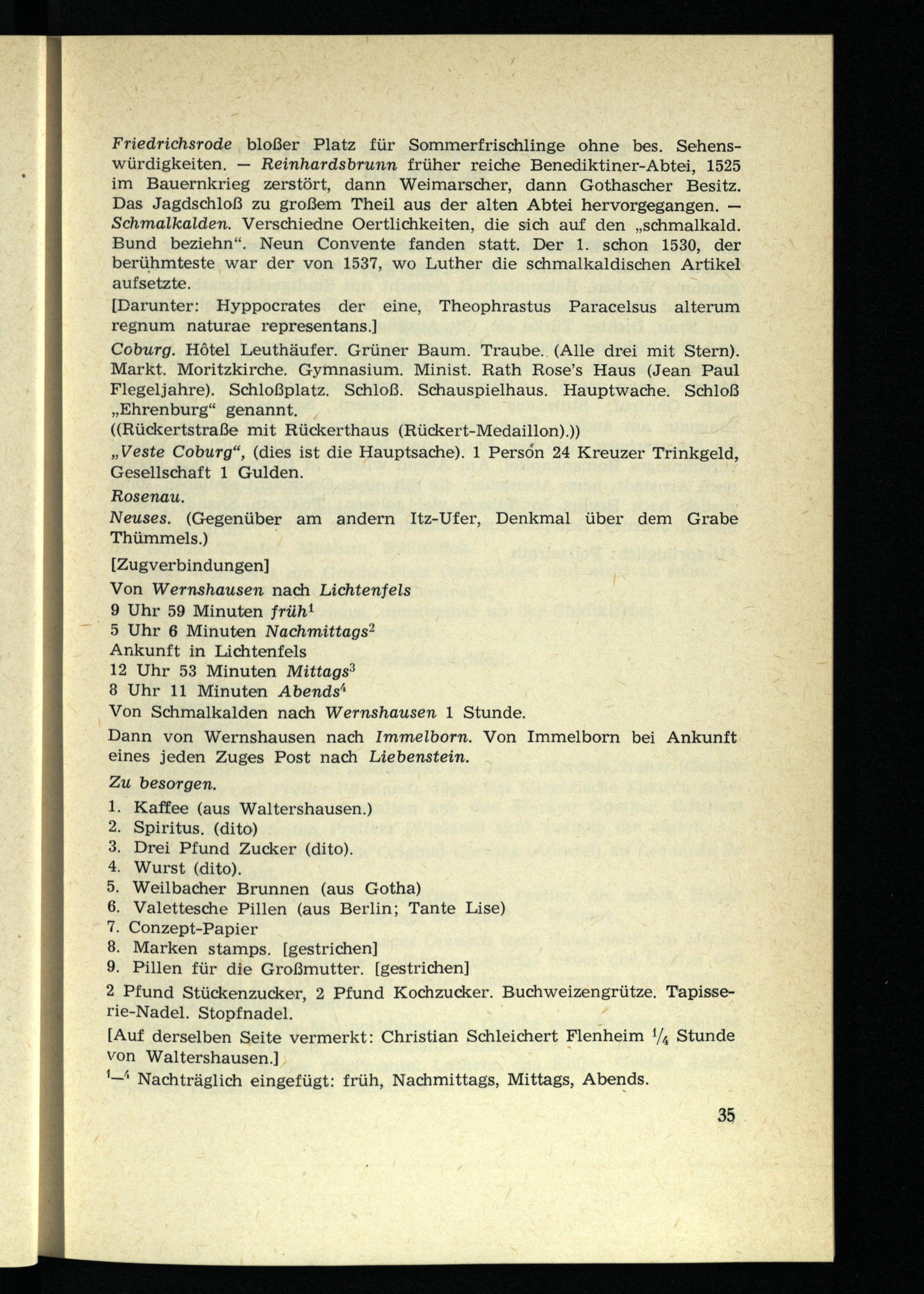 Notizbuchaufzeichnungen von der Thüringenreise im Jahre 1873
