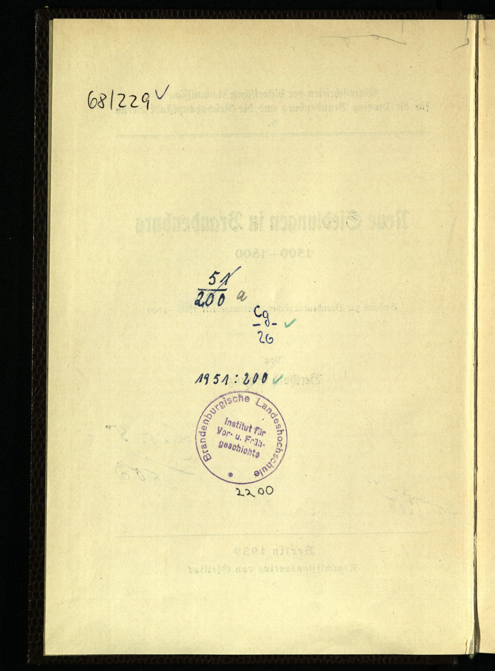 Neue Siedlungen in Brandenburg : 1500 - 1800 ; Beiband zur Brandenburgischen Siedlungskarte 1500 - 1800 / von Berthold Schulze