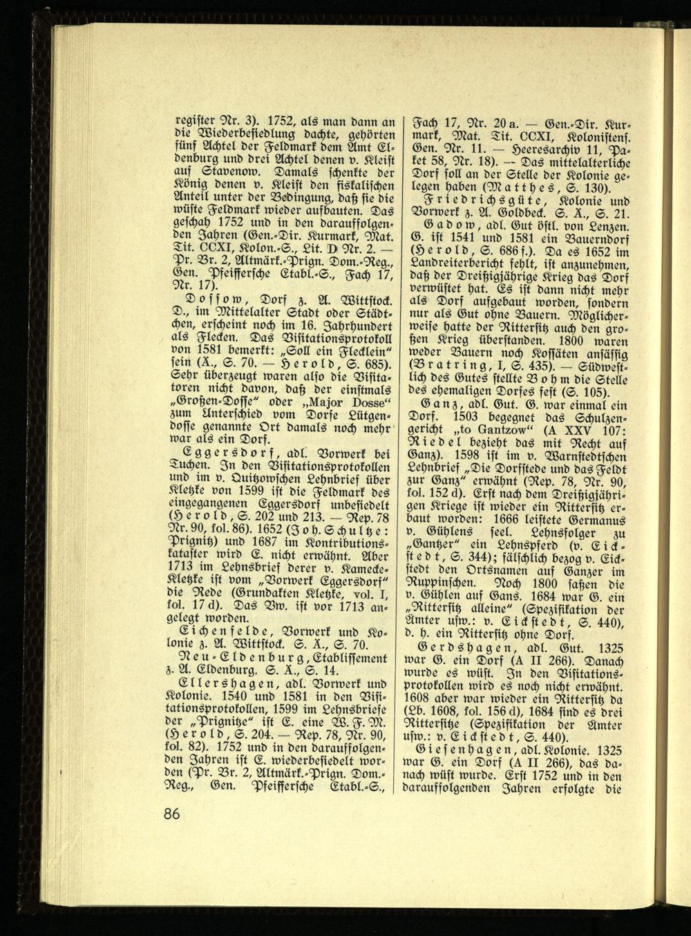 Neue Siedlungen in Brandenburg : 1500 - 1800 ; Beiband zur Brandenburgischen Siedlungskarte 1500 - 1800 / von Berthold Schulze