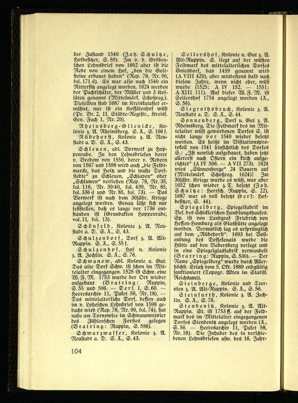 Neue Siedlungen in Brandenburg : 1500 - 1800 ; Beiband zur Brandenburgischen Siedlungskarte 1500 - 1800 / von Berthold Schulze