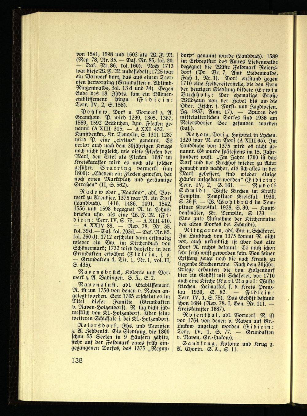 Neue Siedlungen in Brandenburg : 1500 - 1800 ; Beiband zur Brandenburgischen Siedlungskarte 1500 - 1800 / von Berthold Schulze