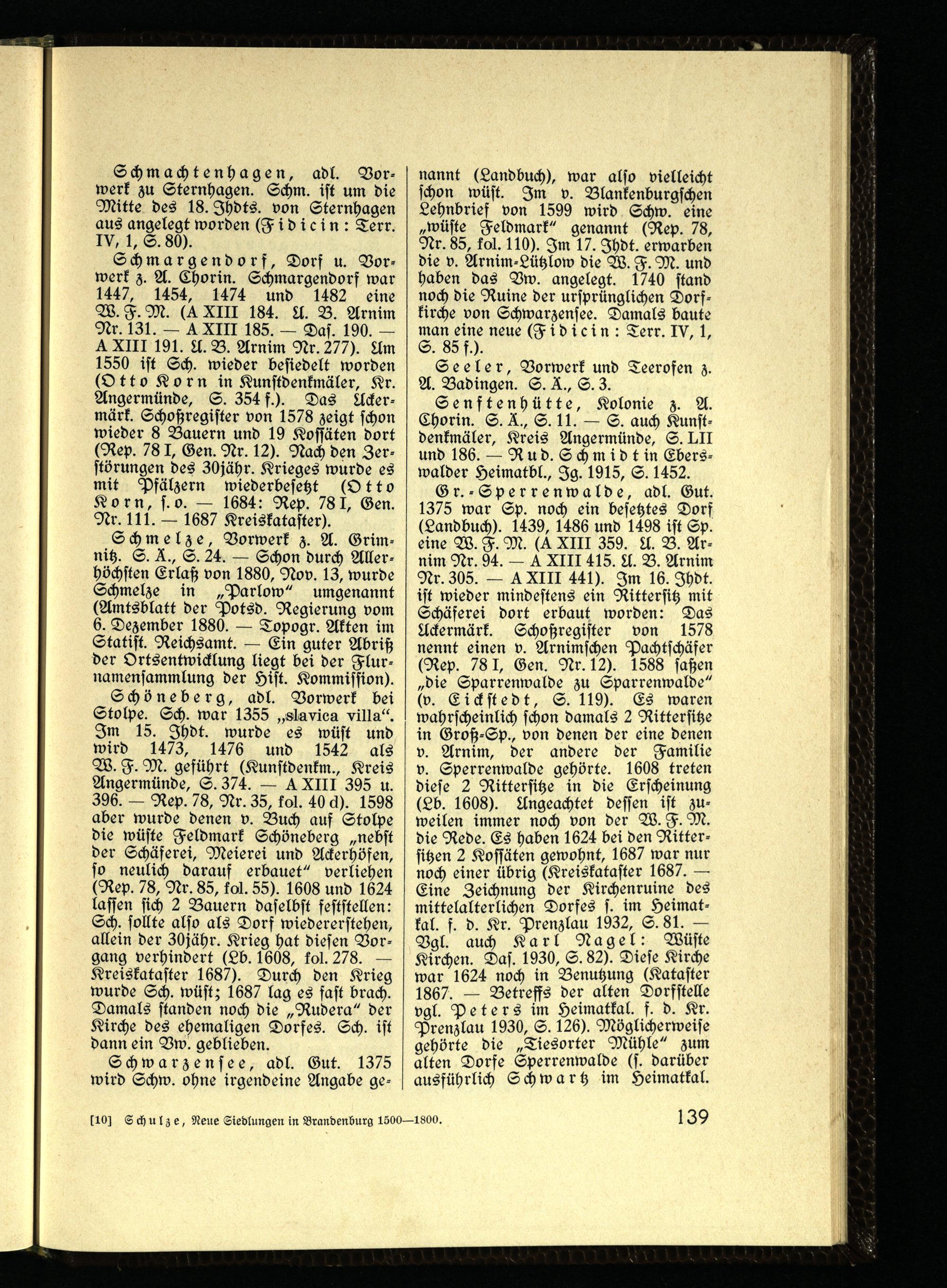 Neue Siedlungen in Brandenburg : 1500 - 1800 ; Beiband zur Brandenburgischen Siedlungskarte 1500 - 1800 / von Berthold Schulze