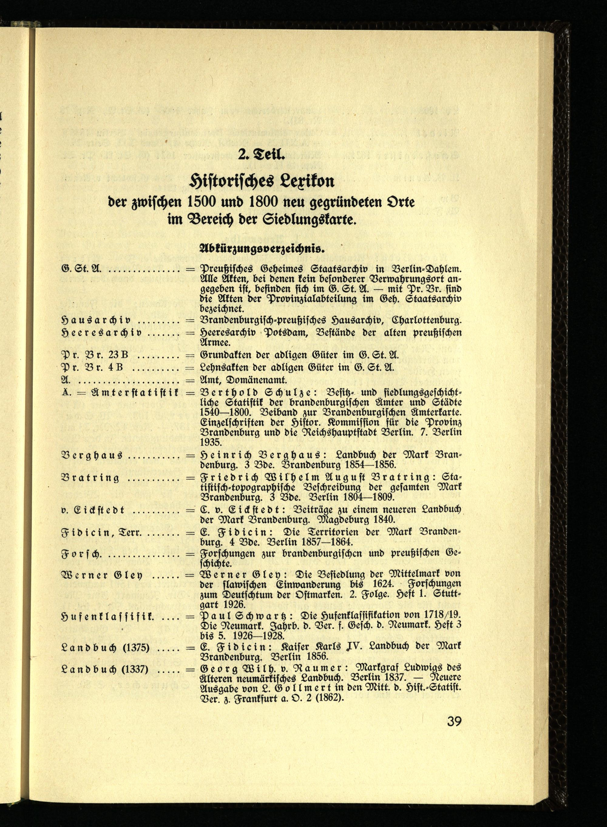 2. Teil. Historisches Lexikon der zwischen 1500 und 1800 neu gegründeten Orte im...