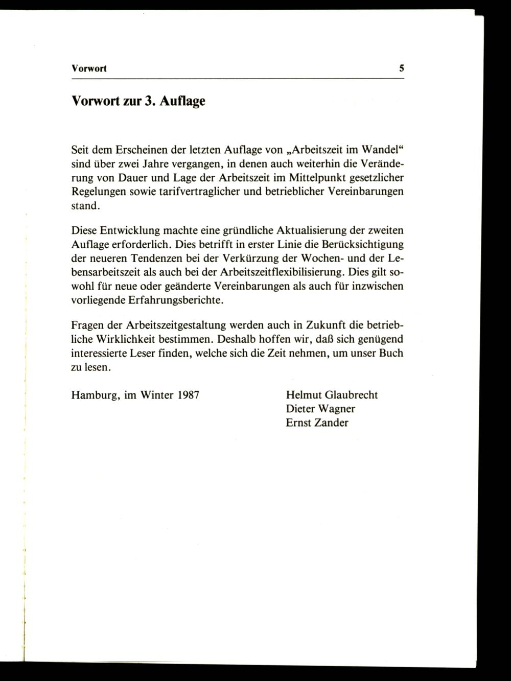 Arbeitszeit im Wandel : Möglichkeiten und Formen der Arbeitszeitgestaltung / von Helmut Glaubrecht; Dieter Wagner; Ernst Zander
