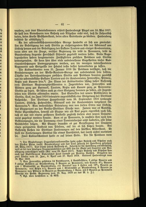 Die Reform der Verwaltungsbezirke in Brandenburg und Pommern 1809 - 1818