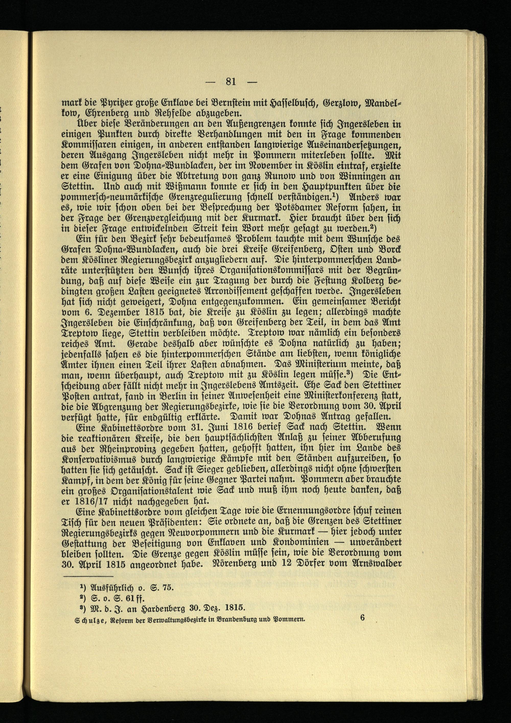 8. Kapitel. Die Reform im Regierungsbezirk Stettin.