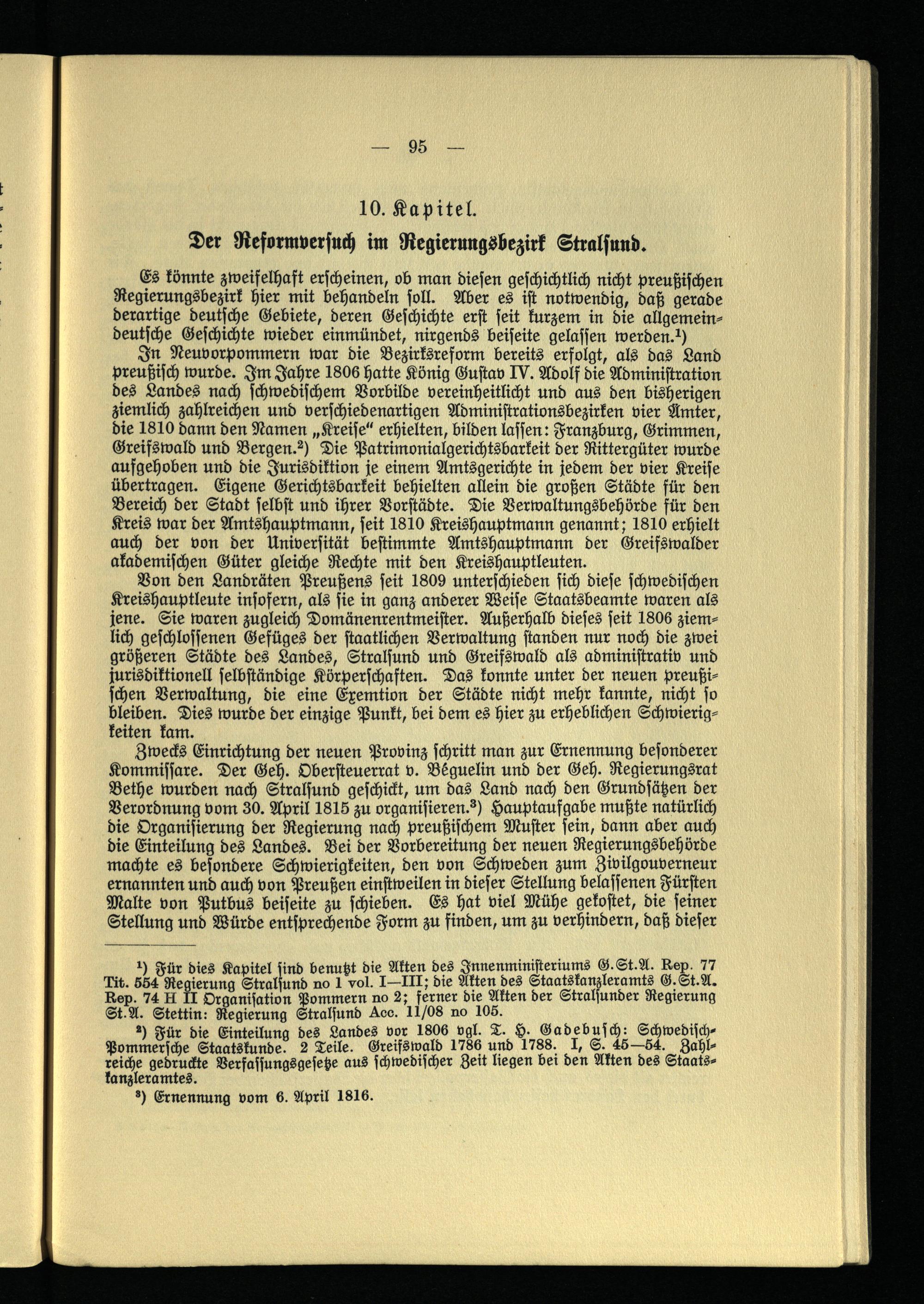 10. Kapitel. Der Reformversuch im Regierungsbezirk Stralsund.